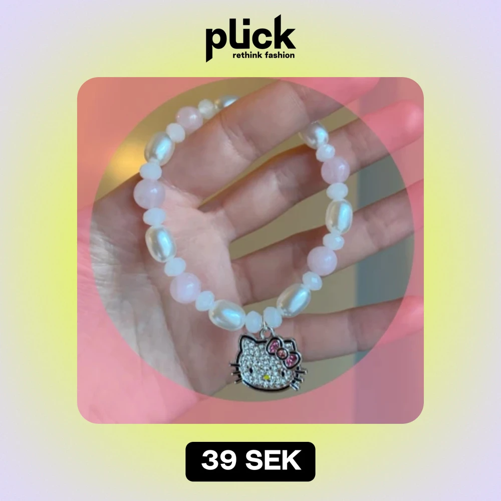 Cute hello Kitty armband med rosenkvarts pĂ€rlor. Finns endast 1 kvar!đž