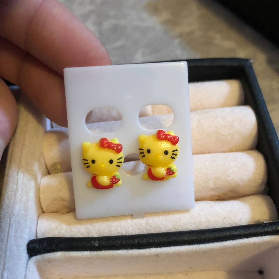 Helt oanvända hello Kitty örhängen i olika former och färger.