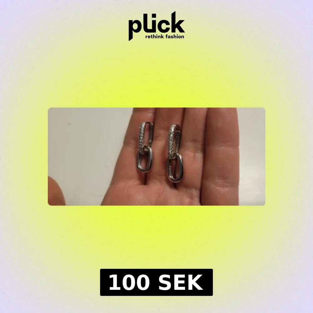 Helt nya silver 925 örhängen med rektangulär form och glittriga stenar längs ena delen. De har en cool länkdesign med två sammankopplade delar, varav en är slät och den andra är dekorerad med små stenar. Perfekt för dig som gillar stilrena detaljer med lite extra bling.
