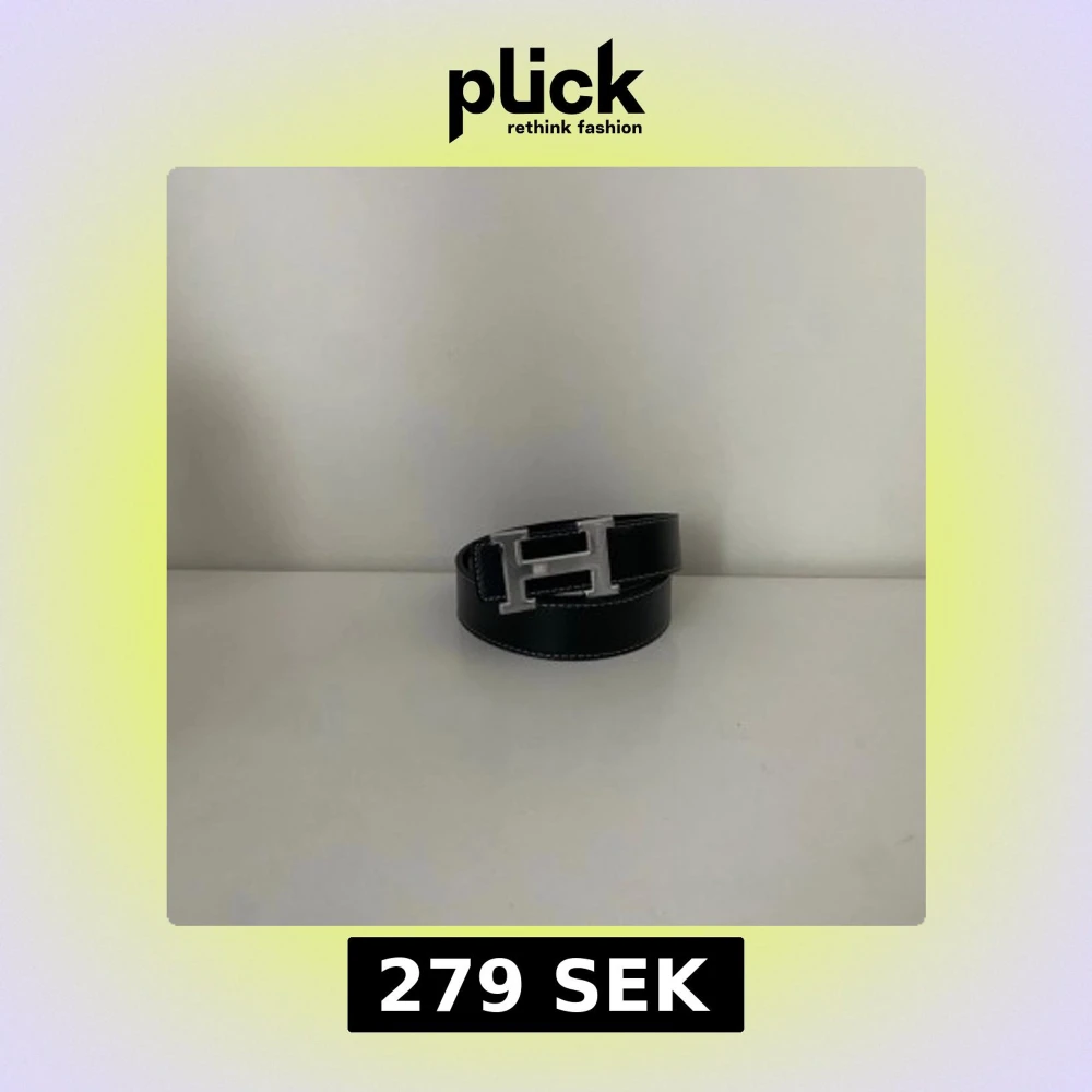 Snyggt svart skärp med ett stort H-format spänne i silverfärg. Skärpet har vita sömmar längs kanterna som ger en schysst kontrast. Perfekt accessoar för att lyfta din outfit med en stilren detalj.Längd 110cm