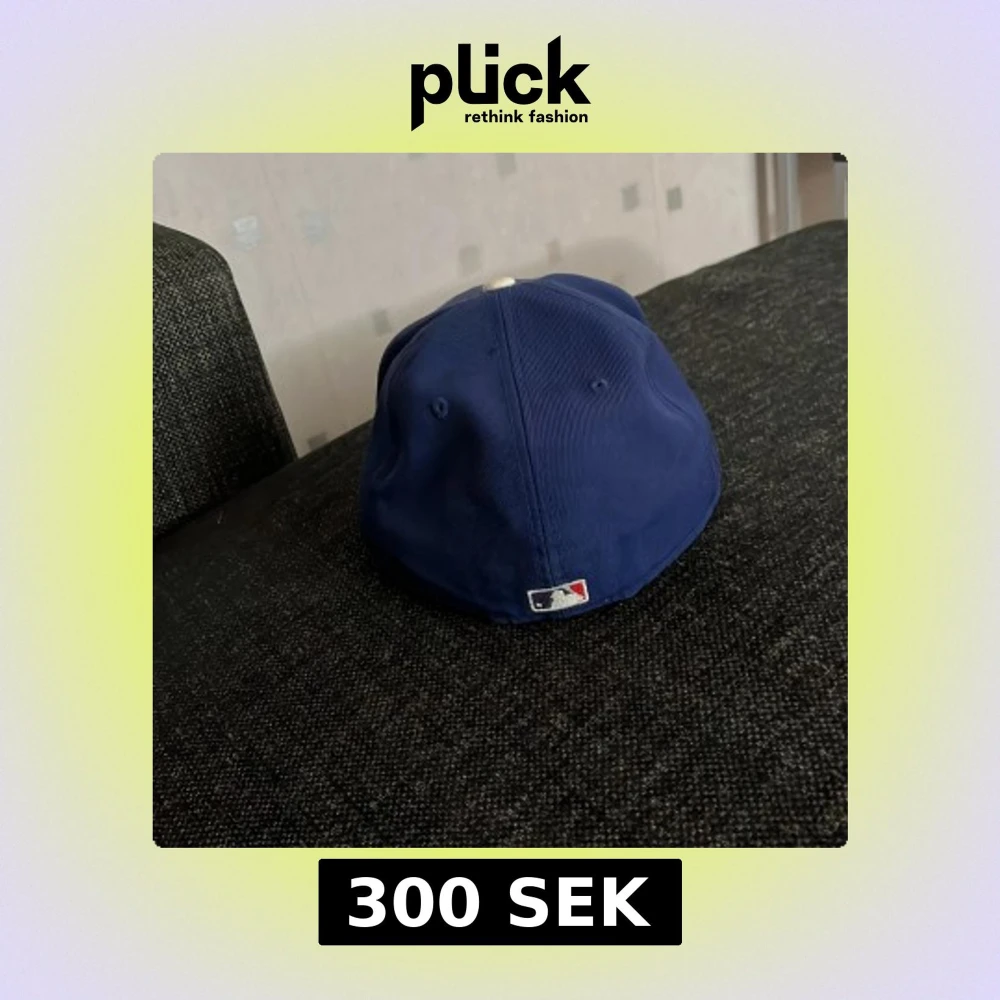 Säljer en blå keps från New Era, modell 59FIFTY. Kepsen har en vit LA-logga på framsidan och är en del av MLB Authentic Collection. Den är i storlek 7 3/8 (58.7 cm) och har en böjd skärm. Perfekt för sommarens alla äventyr!