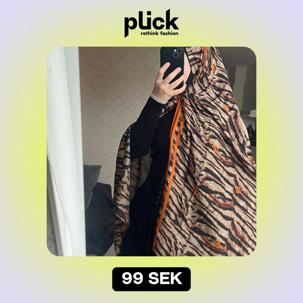 Snygg sjal med tigertryck i brunt och svart, detaljerad med orange inslag. Helt nyđïžđ€đ»