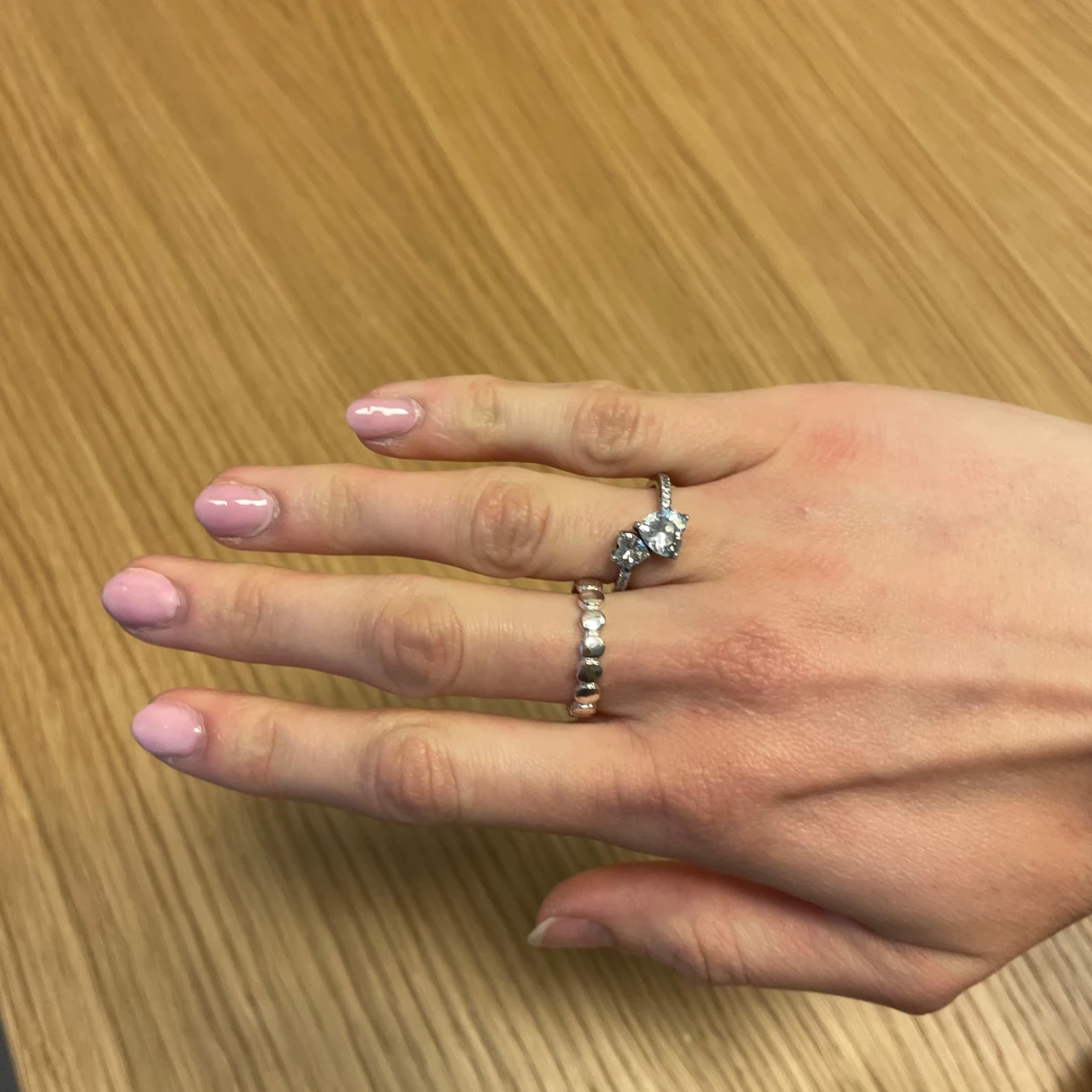 Så söt ring från pandora med motiv av 2 hjärtan, i äkta silver 925. Pandoras storlek 52, motsvarar 16 i ringstorlek💕