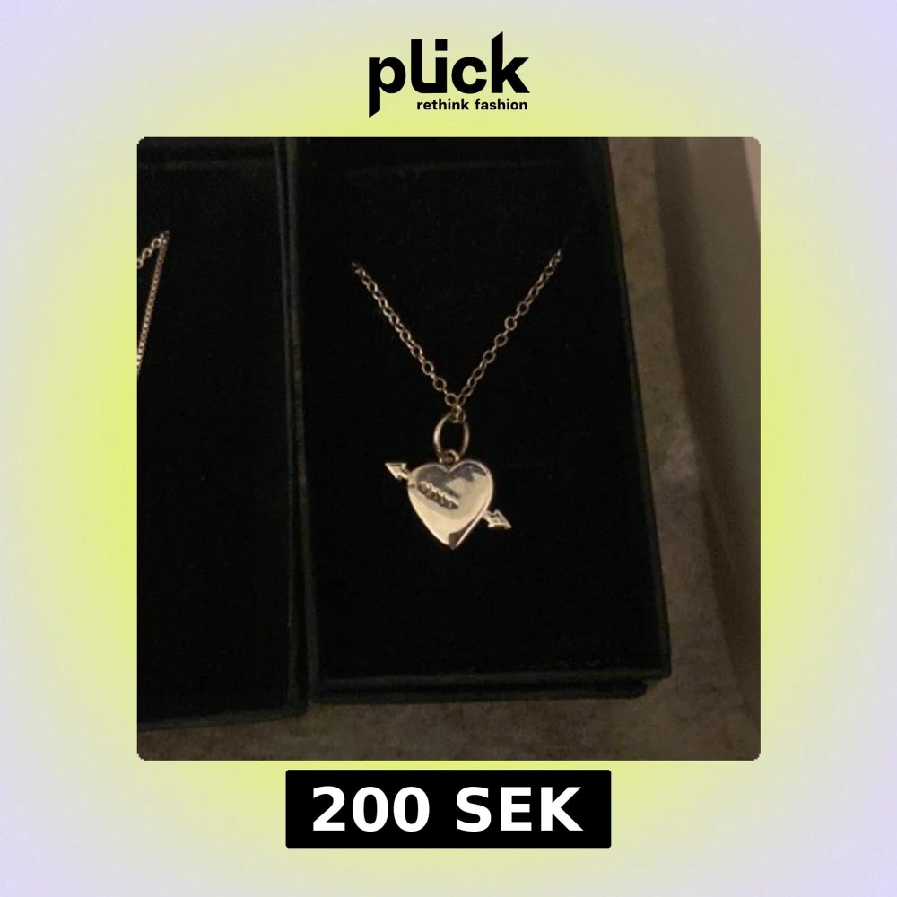 Säljer detta snygga silverfärgade hjärthalsband som har en pil genom sig och med ingraverad söm över hjärtat. Köpte från alvazessentials 💘 Längd 45-50 cm