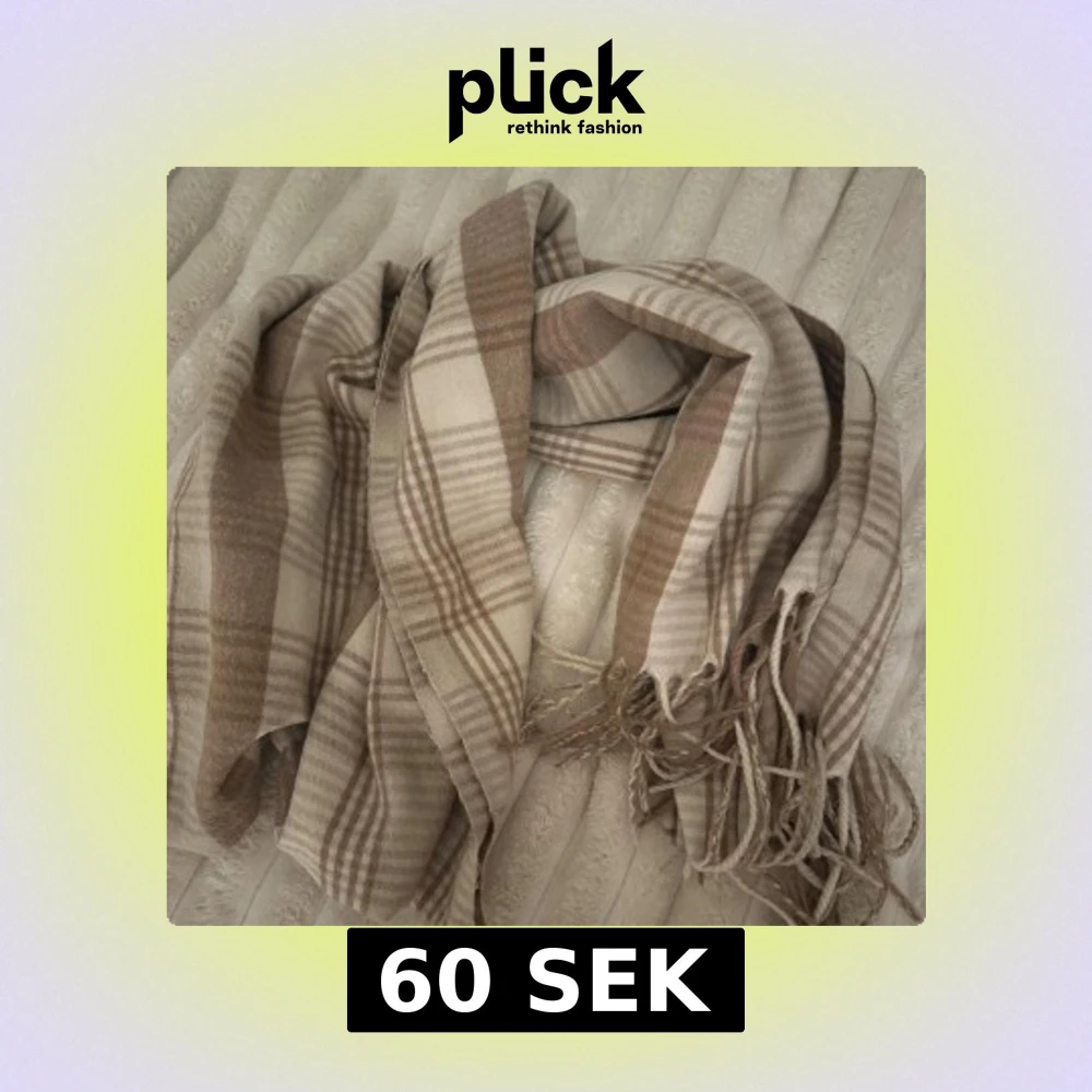 Säljer en mysig beige och brunrutig halsduk från H&M med fransar i kanterna. Perfekt att svepa runt halsen för extra värme och stil. Mjuk och skön känsla, passar till många olika outfits.