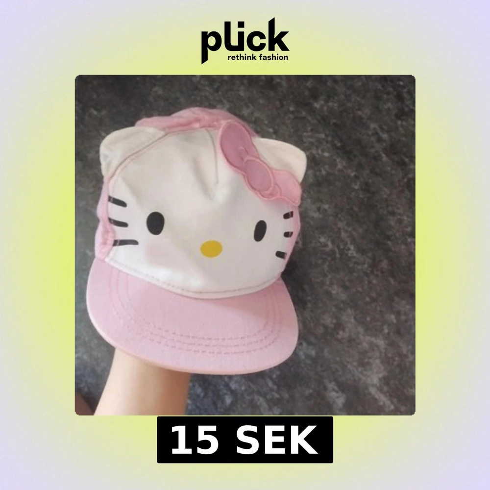 Supersöt rosa keps från H&M med Hello Kitty-design. Framsidan har Hello Kittys ansikte, 3D-öron och en rosa rosett. Skärmen är ljusrosa med vit Hello Kitty-text. Kepsen är i mjuk bomull och har resår bak för skön passform.