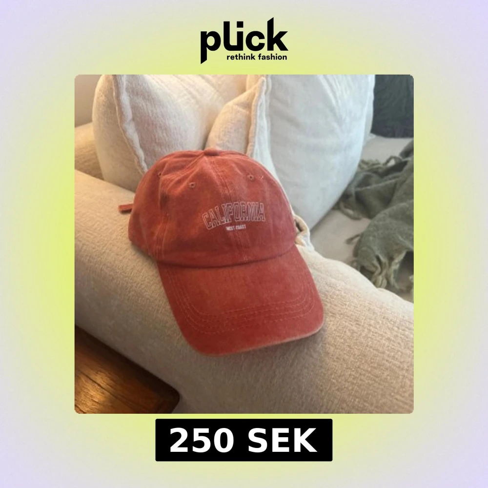 Säljer en snygg korallfärgad keps med broderad vit text 'CALIFORNIA WEST COAST' framtill. Justerbar rem baktill för perfekt passform. Perfekt accessoar för en avslappnad stil.
