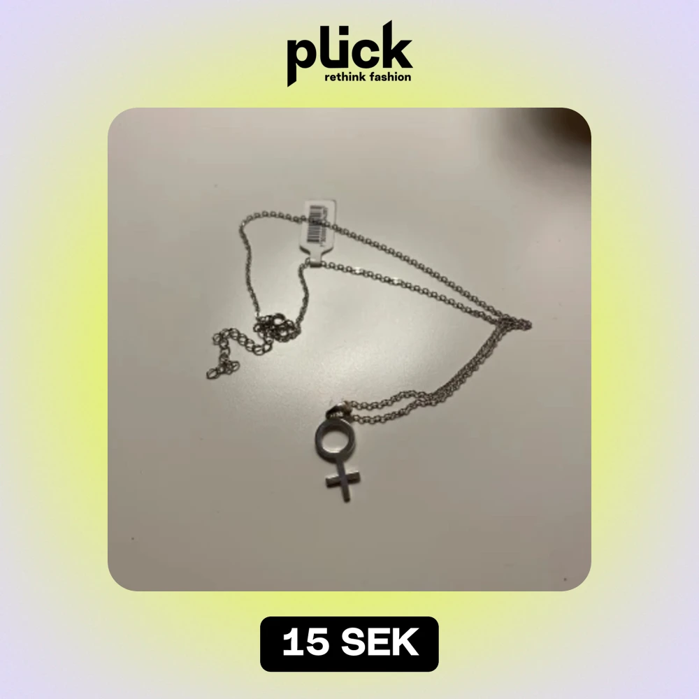 Oanvänt halsband med kvinnotecken. Tror det är av silver men är osäker