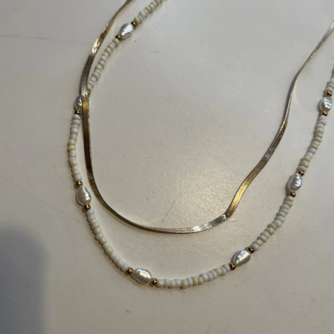 Super fint guld och pärlhalsband! Helt nytt och andvänt endast någon enstaka gång. Super fint och passar till allt! Fin guldfärg och fina vita pärlor på. Det är två halsband i ett! Pris kan diskuteras. Skriv privat vid fler frågor! 💕