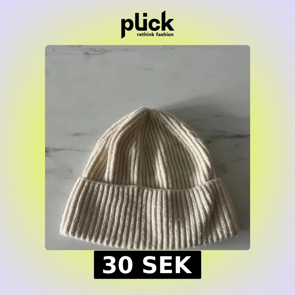 Ribbstickad beige mössa från H&M i klassisk modell med uppvikt kant. Tillverkad i mjukt material som passar perfekt för kyliga dagar. Enkel och stilren design som funkar till de flesta outfits.