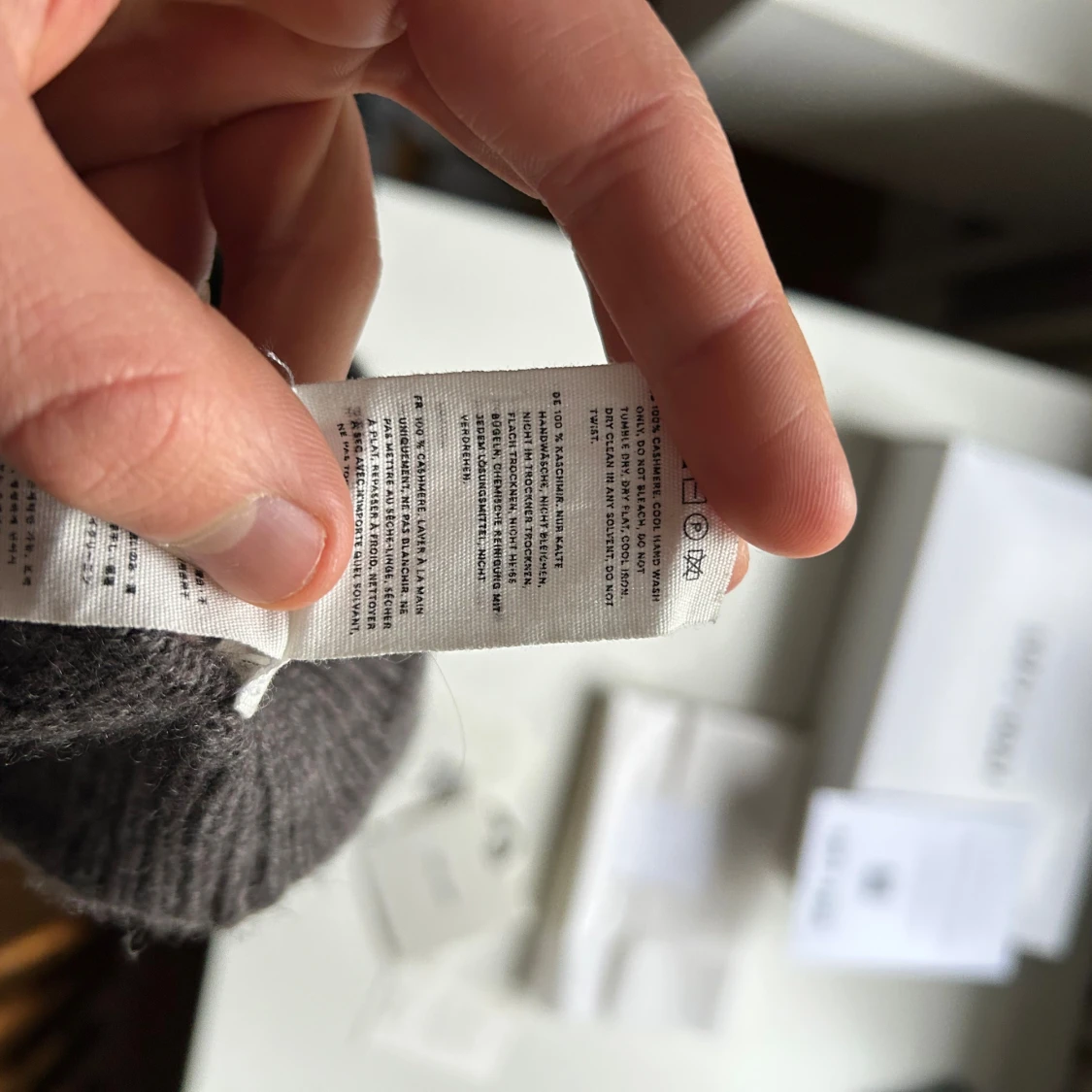 Säljer en stilren och mjuk mössa från Soft Goat i mörkgrått. Mössan är ribbstickad med uppvikt kant och tillverkad i 100% kashmir för extra lyxig känsla. Perfekt för kyliga dagar och enkel att matcha med olika outfits. Använd 2 gånger