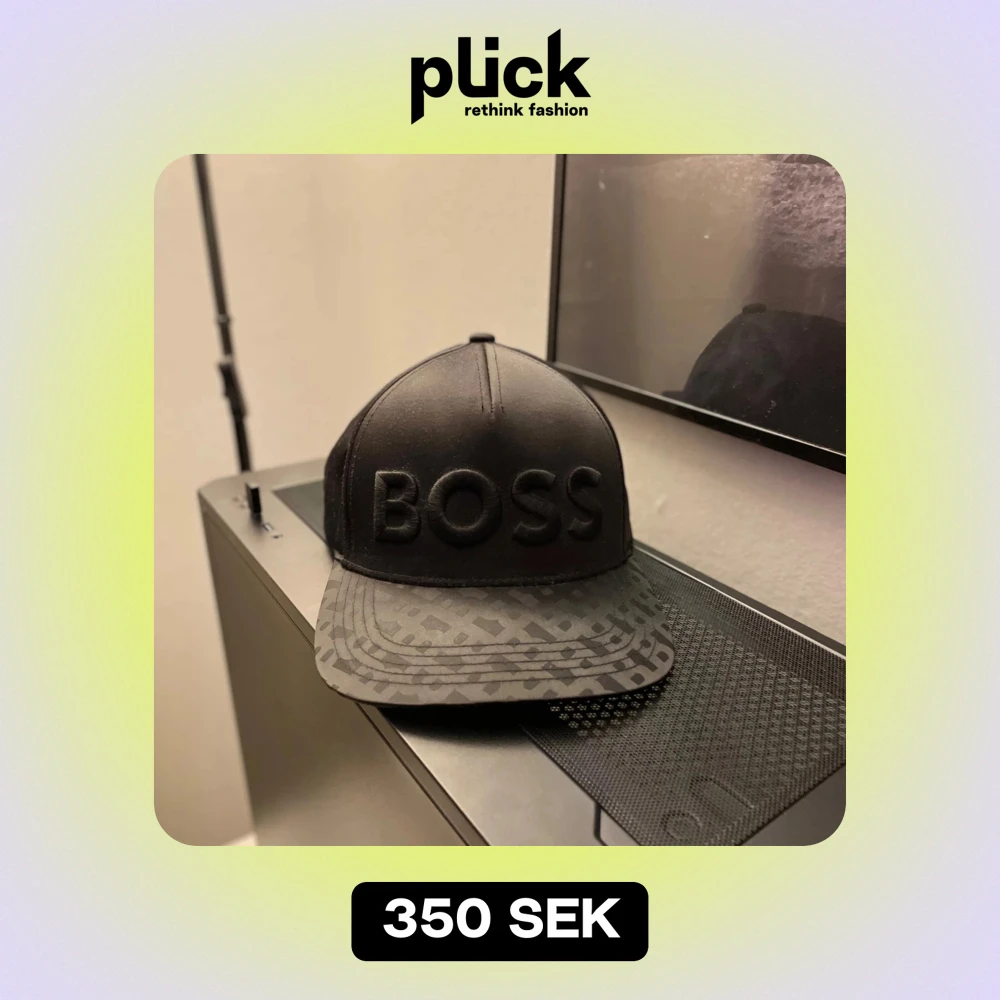 Snygg svart keps från Boss med ett coolt mönster på skärmen och broderad text framtill. Perfekt för att ge din outfit en stilren touch. Kepsen har justerbar passform och är i mycket bra skick.