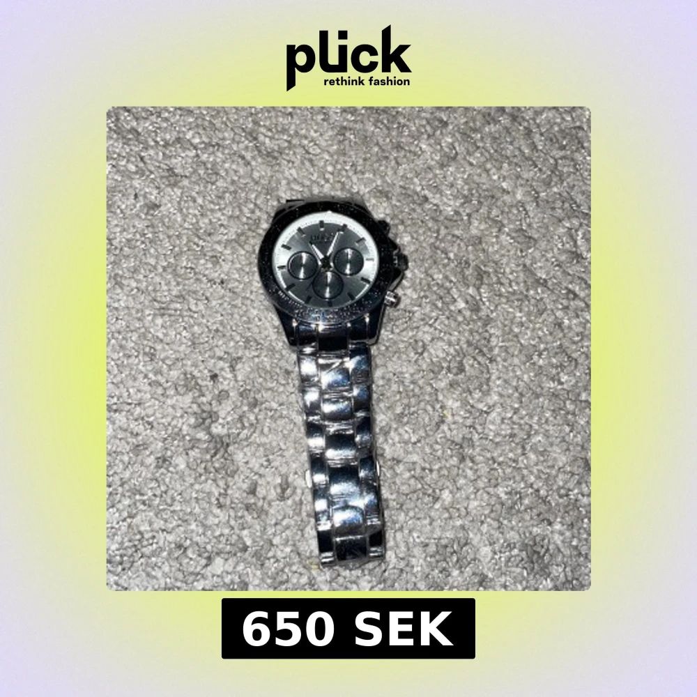 Hej, jag säljer en nästan helt ny Hugo Boss klocka jag har aldrig använt den, jag har bara testat den, jag säljer den för jag tyckte att den inte passade med mig, Snygg kronografklocka från Hugo Boss i silverfärgat rostfritt stål. Klockan har en rund urtavla med tre mindre subdials, markerade index och metallarmband med breda länkar. Perfekt accessoar för dig som gillar stilrena detaljer och klassisk design.