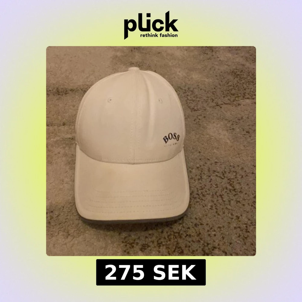 Snygg vit keps från Hugo Boss med broderad logga på framsidan. Perfekt för en stilren look. Justerbar passform för optimal komfort, den är köpt för 950kr och är knappt använd jätte fin till sommaren tveka inte på prisförslag!