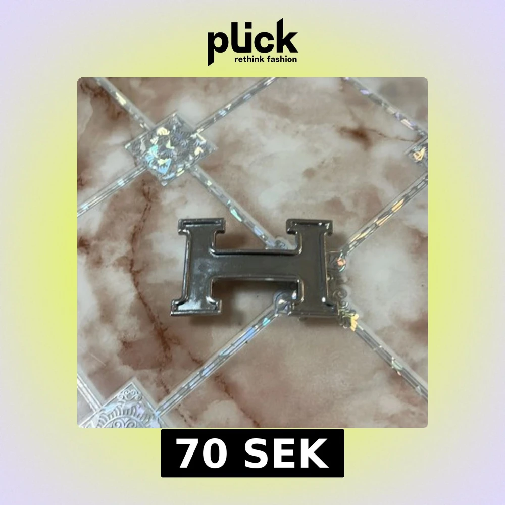 Säljer ett stilrent bältesspänne i form av ett H, i blank silverfärg. Passar till bälten med utbytbart spänne. Spännet har en klassisk och tidlös design som ger en exklusiv känsla till din outfit.