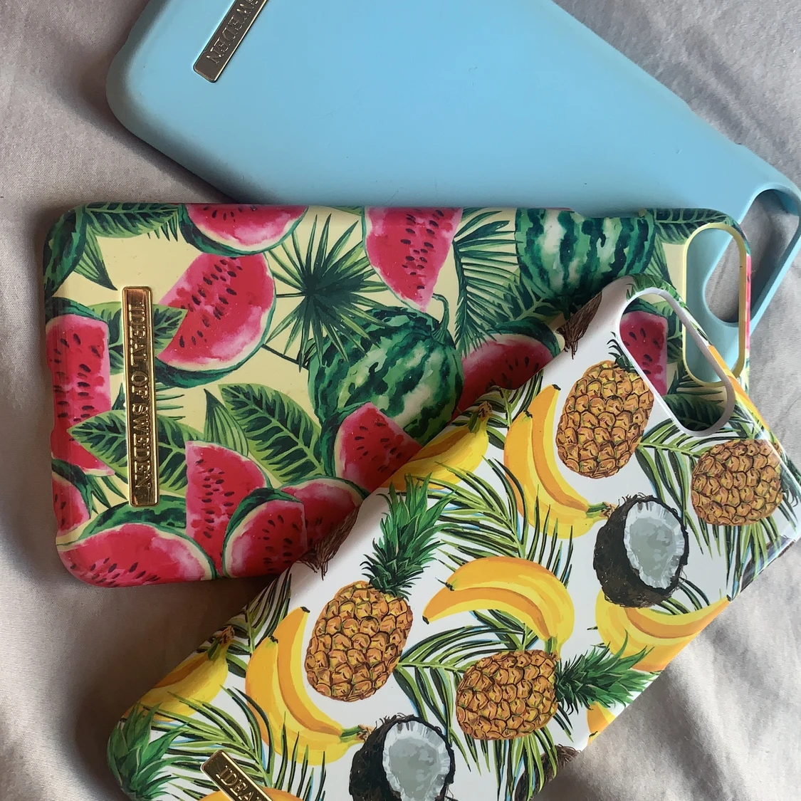 iPhone 7&8 + skal. Okej skick på alla. 50kr per skal förutom det längst till vänster som har lampop på skalet som man kan sätta igång, 30kr. 3 ifrån ideal of sweden, ett kenzo skal & ett skal som lyser