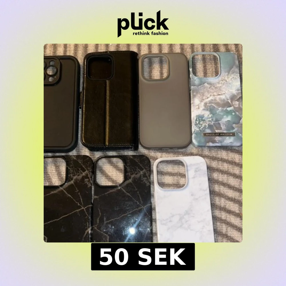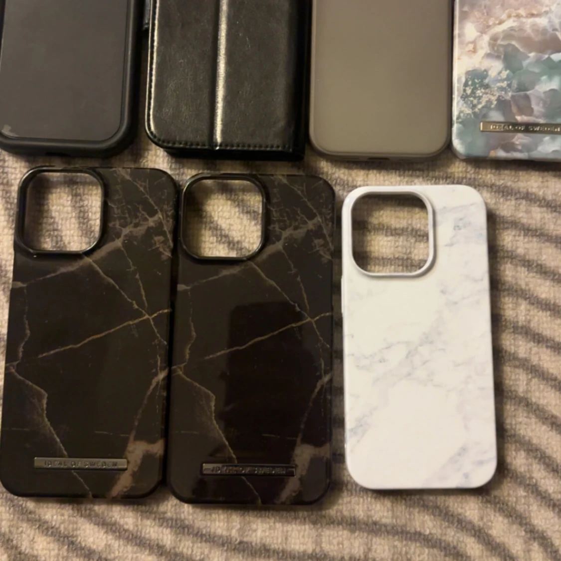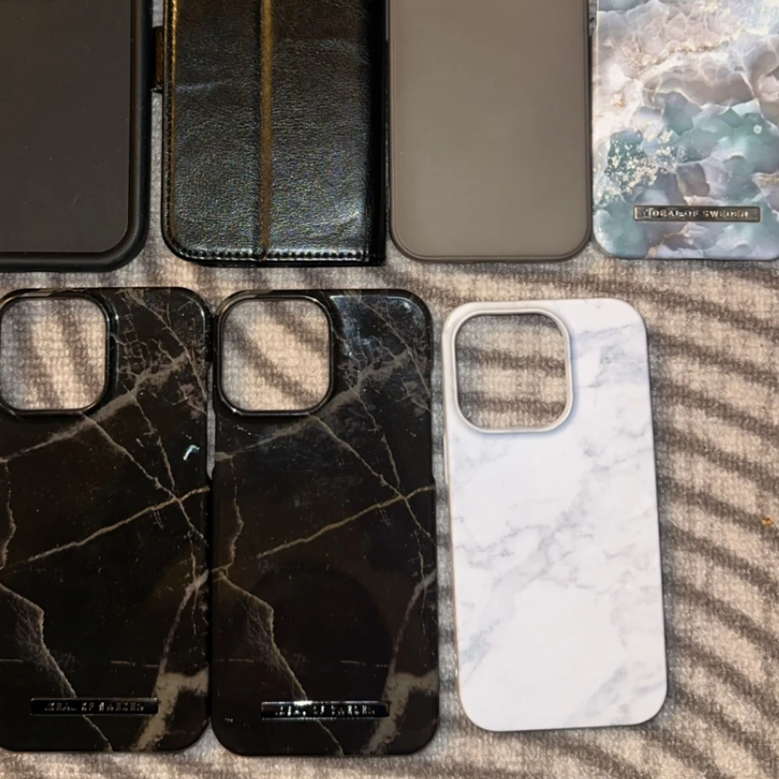 Säljer en samling av mobilskal och fodral i olika stilar och material. Inkluderar marmor- och stenmotiv samt ett svart läderfodral. Perfekt för att ge din telefon ett nytt utseende. Olika model.