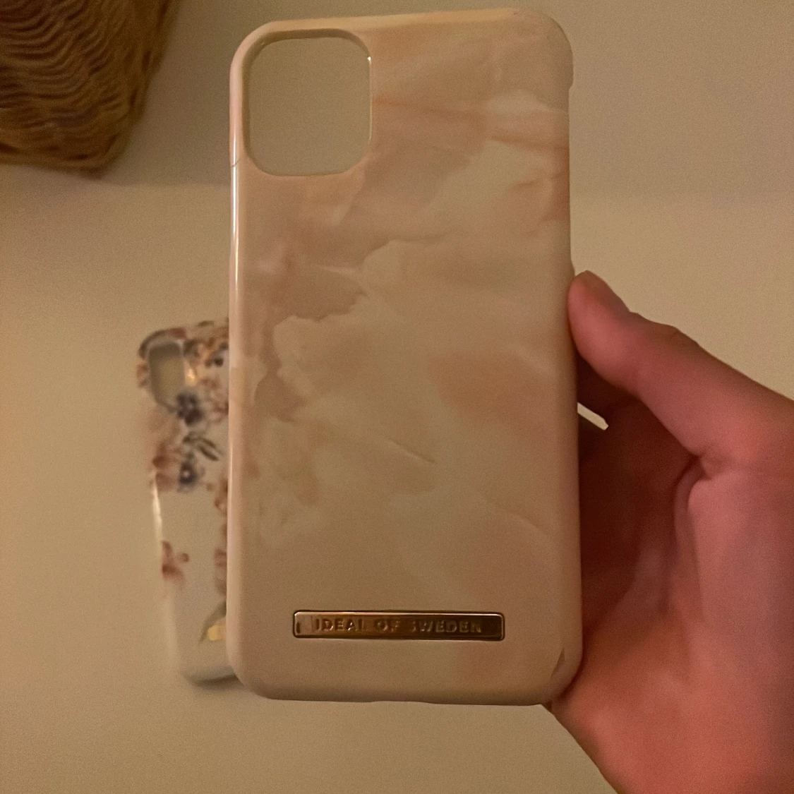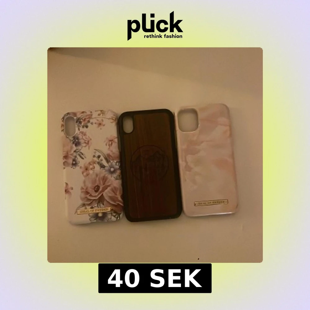 Säljer tre snygga mobilskal, två från iDeal of Sweden och ett från the north face. Ett med blommigt mönster i rosa och lila toner, ett i beige marmormönster och ett i mörkt trä med graverat motiv. Perfekt för dig som vill variera stilen på mobilen! Alla tre kostar 120 och en kostar 40 kr. Passar iPhone xr och iPhone 11.