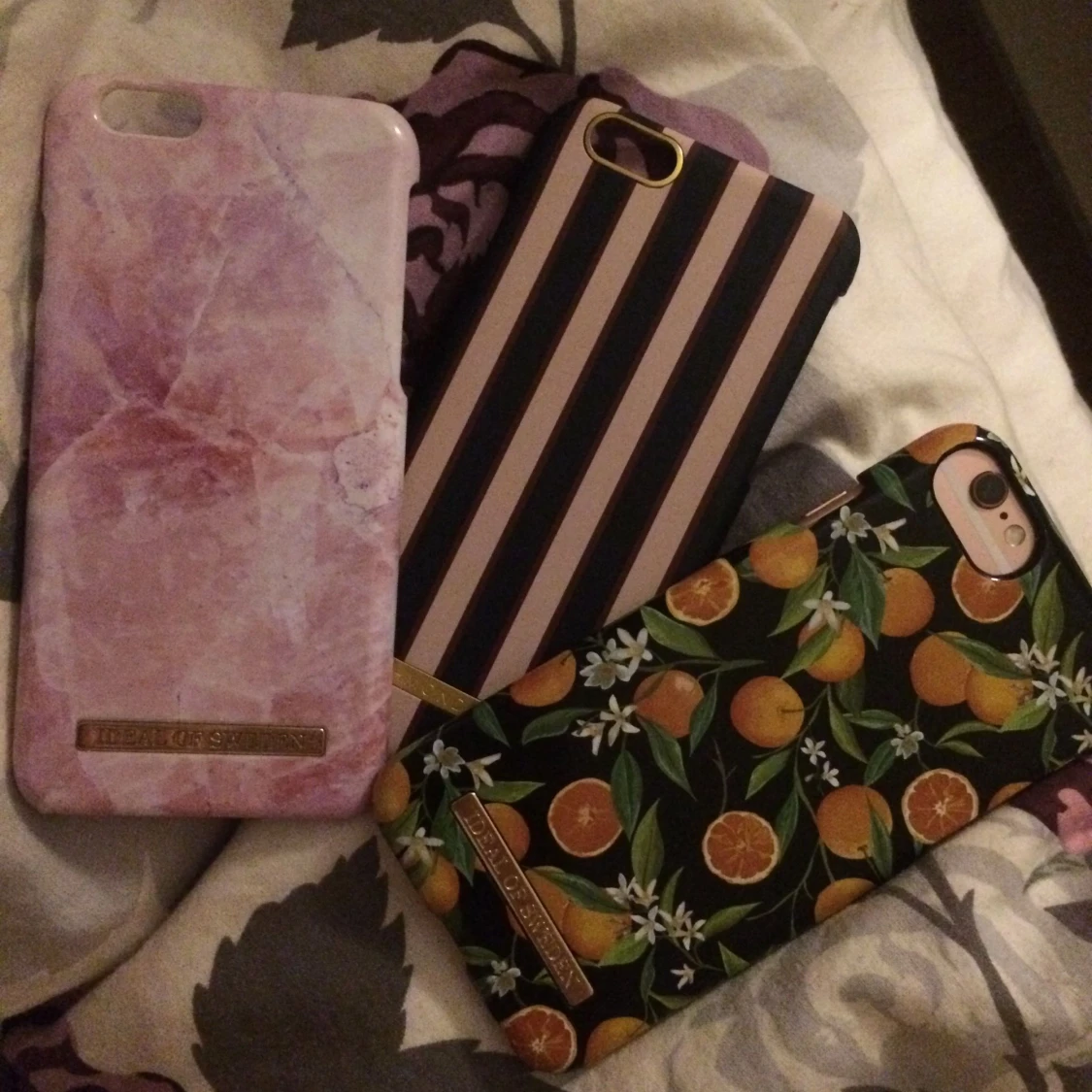 2 skal från Ideal Of Sweden, och ett från Richmond & Finch. I jättebra skick! Det med apelsiner på är endast provat. Passar till IPhone 6/6s/7/8. Nypris på ett skal är 299.