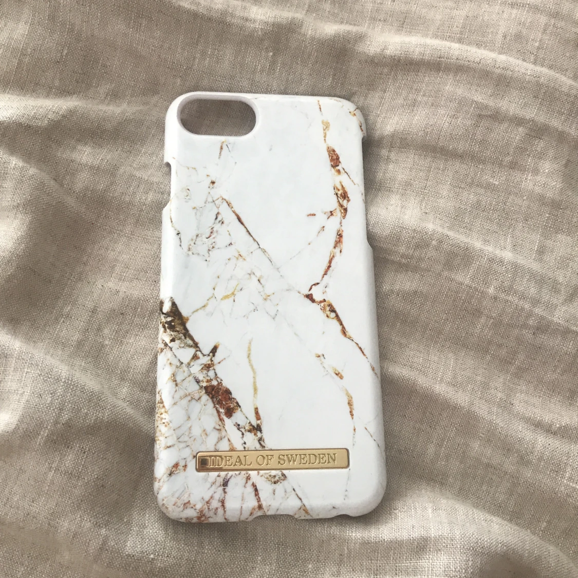 Aldrig använt Ideal Of Sweden skal i vit/guld marmor, passar till IPhone 7, frakt inkluderat i priset.