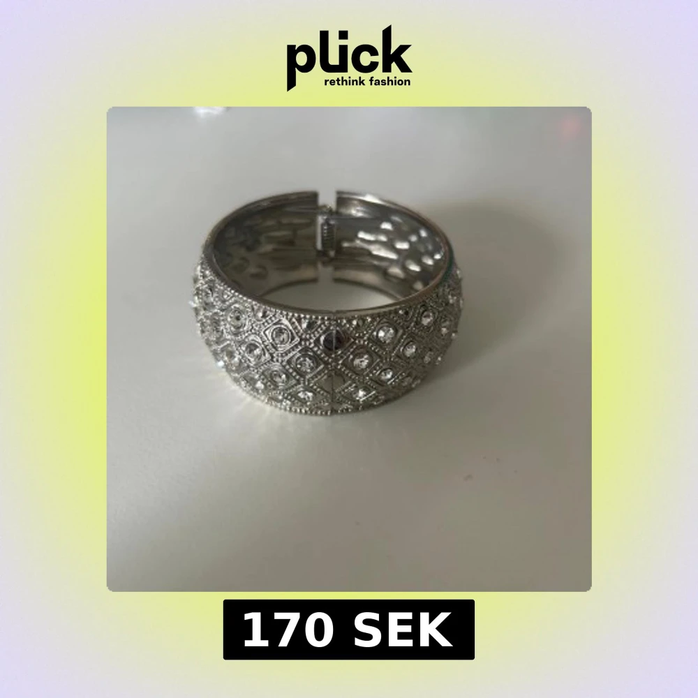 Stilrent och chunky armband i silverfärg med glittrande stenar infattade i ett rutmönster. Armbandet har en bred design och stängs med ett smidigt gångjärn. Perfekt statement piece för dig som gillar att sticka ut.