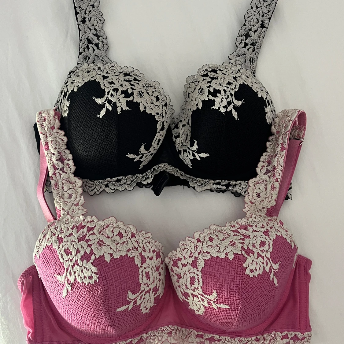 Köp gärna med köp nu. Den rosa är 75E, svarta 75D båda passade när jag hade storlek därmellan💕 Använda men inte mycket, väldigt bra skick. Utanpå syns inget slitage, självklart tvättade! 229 är för båda först till kvarn Nypris 1000 kr
