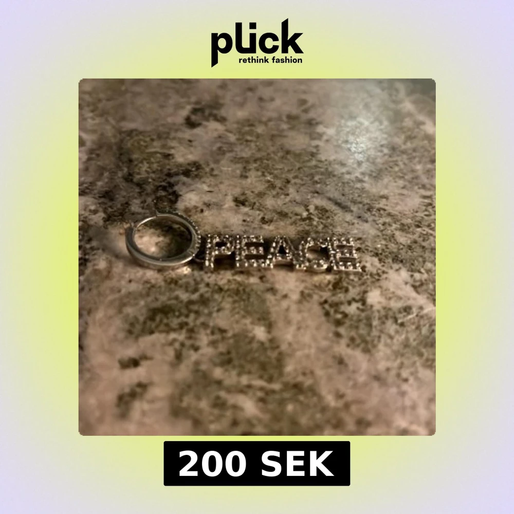 Snyggt örhänge i silverfärg med ordet PEACE i glittriga stenar.