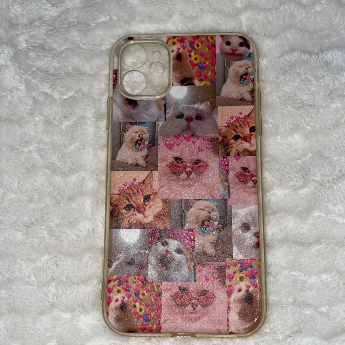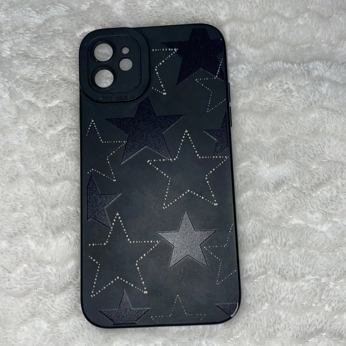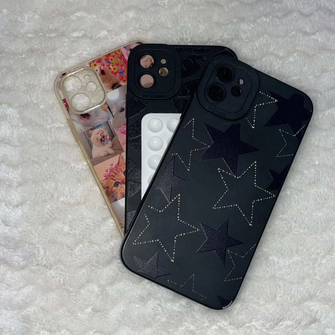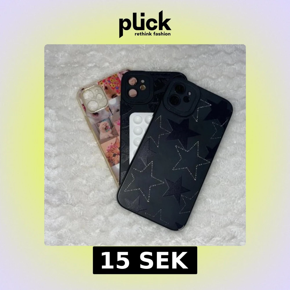 Säljer tre unika mobilskal. Ett svart skal med stjärnmönster, ett svart skal med en pussmunnar och ett transparent skal med collage av söta kattbilder. Perfekt för att ge din mobil en personlig touch!