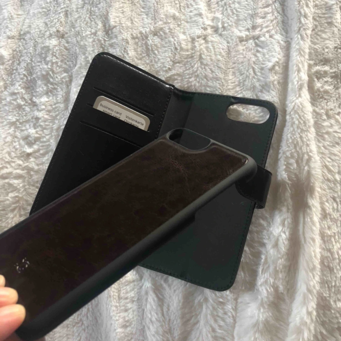 Ett jättefint skal i mörkbrun läder. Nytt i kartong/ aldrig använd. Passar iPhone 7plus o 8 plus. Skalet har en magnet i sig så man kan lägga den i fodralet och då har man enkelt med sig både telefon och plånbok ☺️