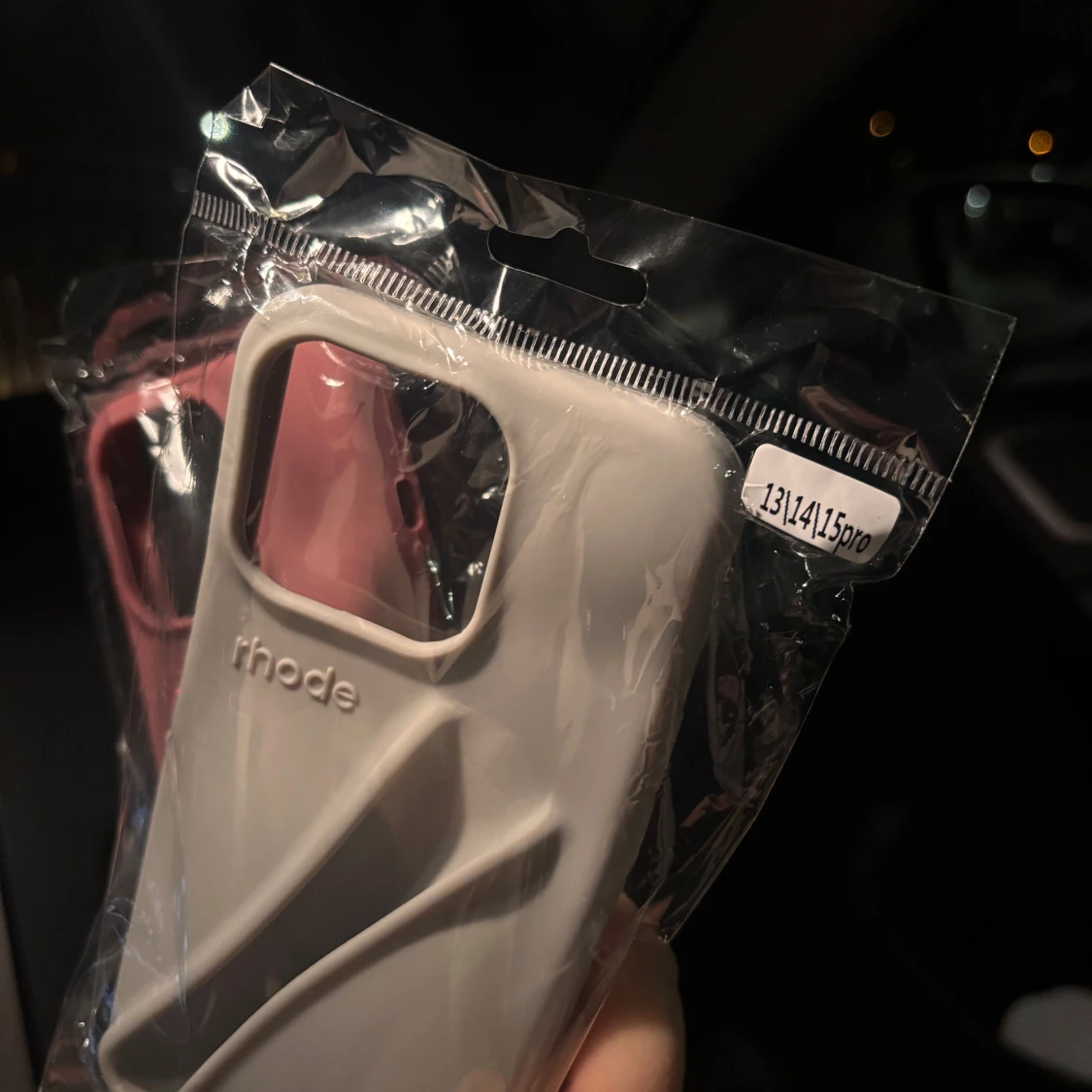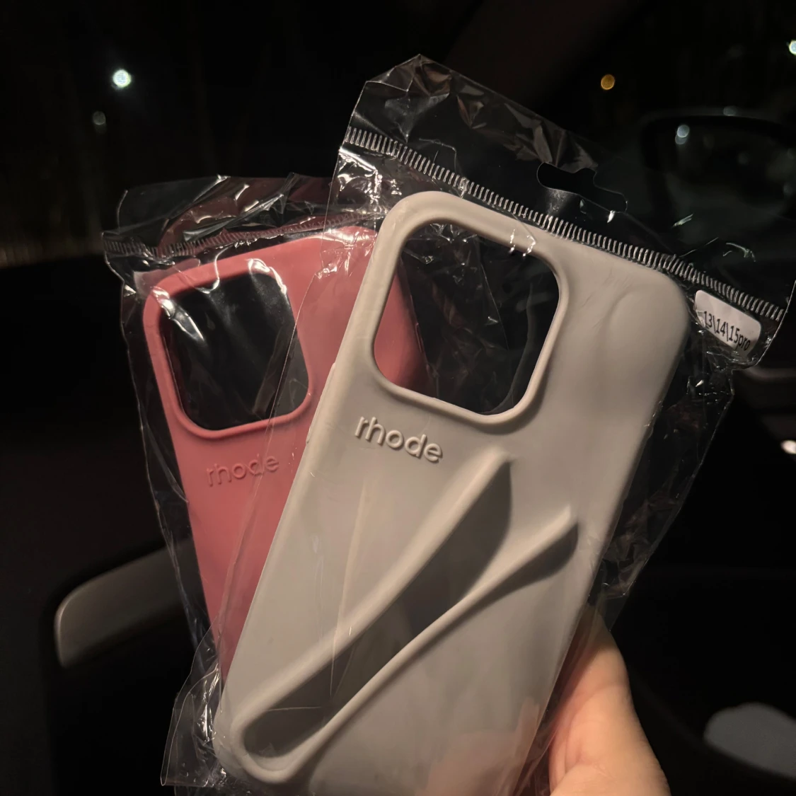 Snygga mobilskal från Rhode i grå färg. Skalen har en unik design med en skulpterad yta och är anpassade för iPhone 13/14/15 Pro. Ej äkta