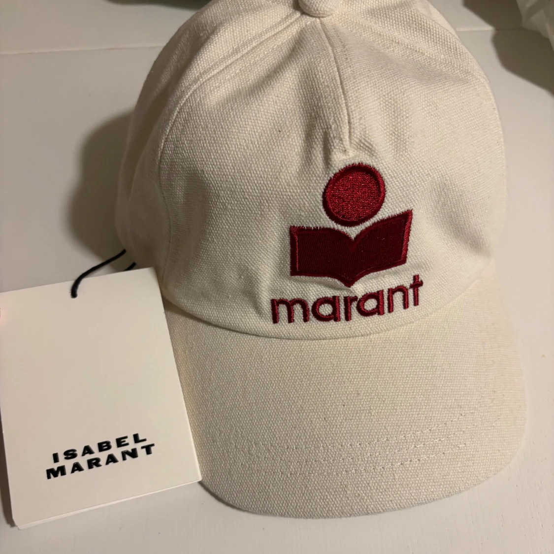 Vit keps från Isabel Marant med röd broderad logotyp framtill. Helt ny och aldrig använd så inga defekter. Pris kan diskuteras.
