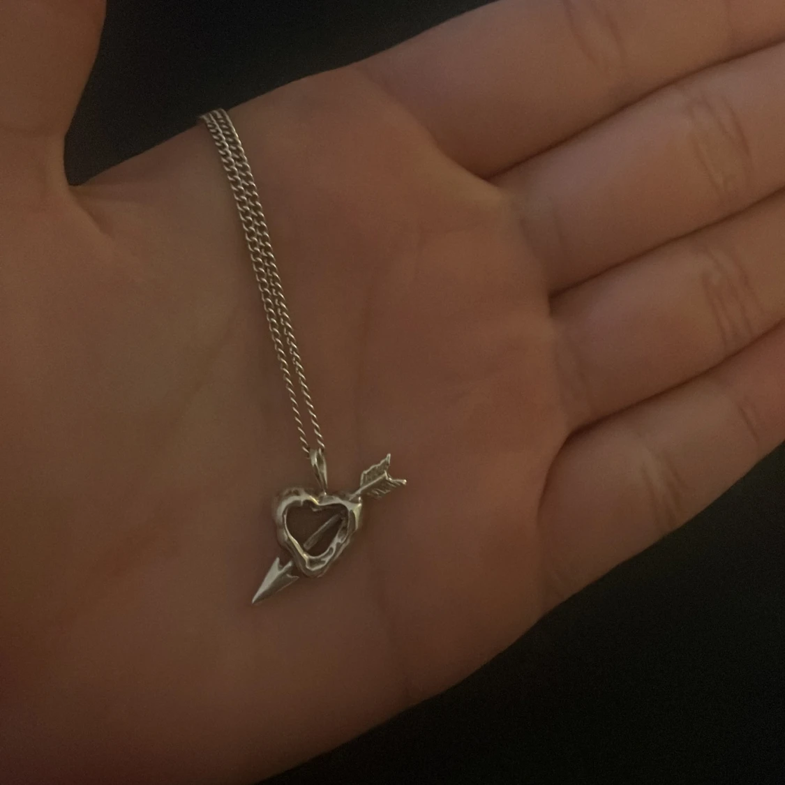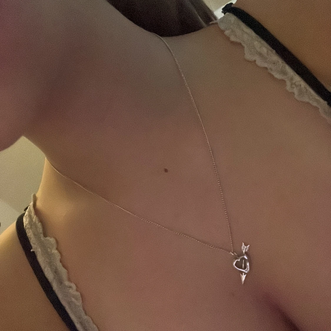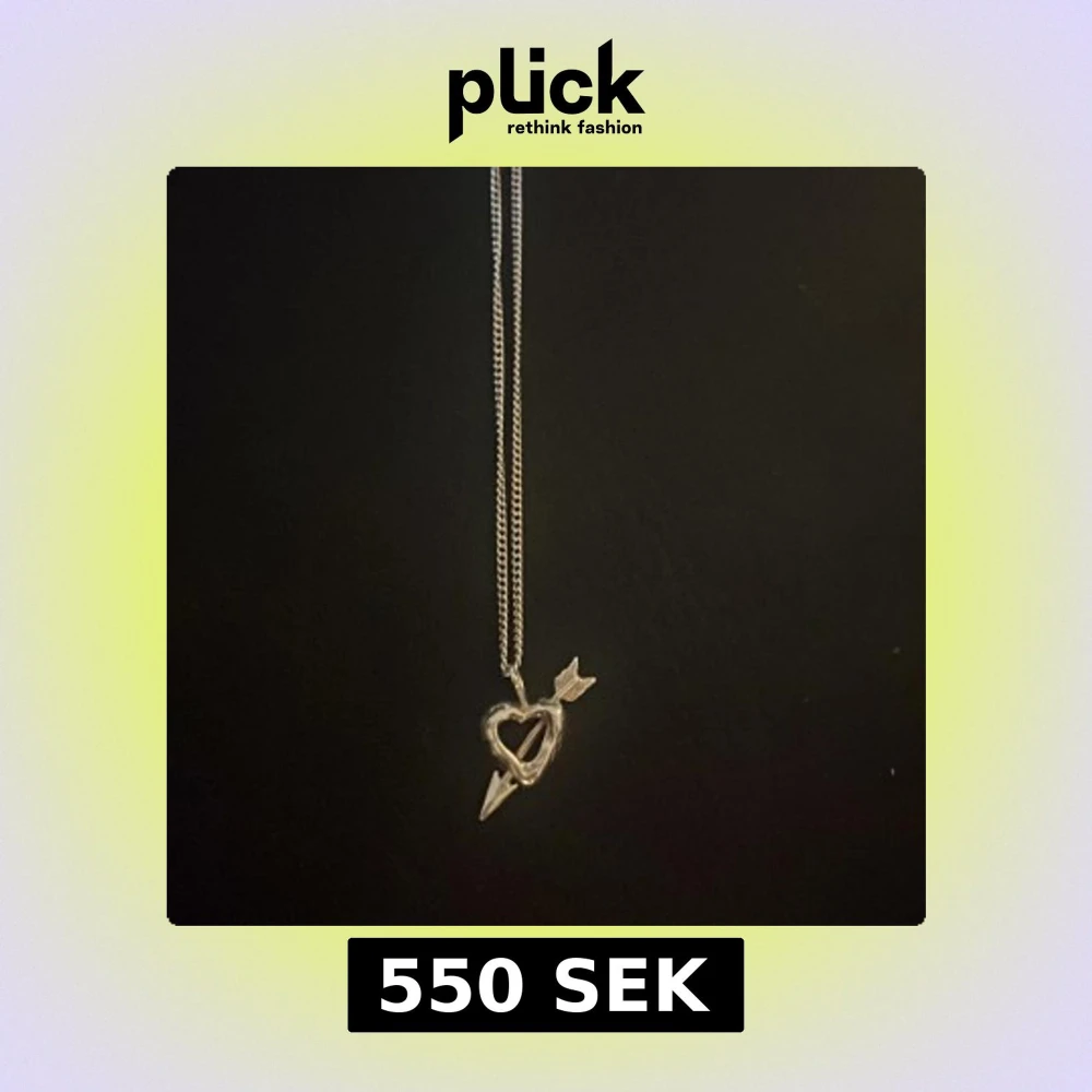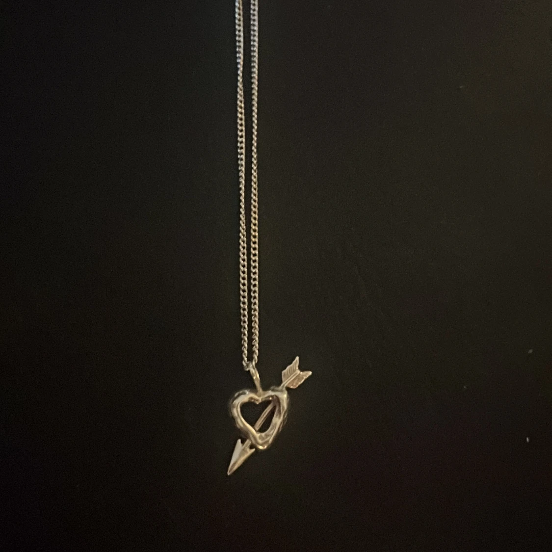 Snyggt halsband från L8hasselblad i silver med ett hängsmycke format som ett hjärta genomborrat av en pil. Kedjan är tunn och stilren, kostade 650kr i ny pris 💗