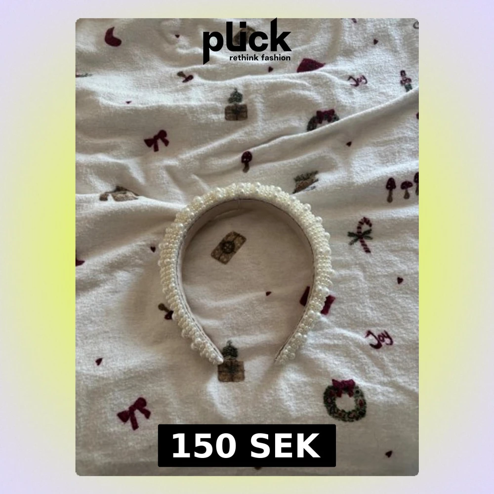 Säljer ett diadem i vit färg, täckt med glansiga pärlor i olika storlekar för en lyxig och trendig look från Lindex. Perfekt accessoar för att lyfta din outfit. Diademet är brett och har en mjuk insida för bekväm användning. Det har aldrig kommit till använding och är endast provat.