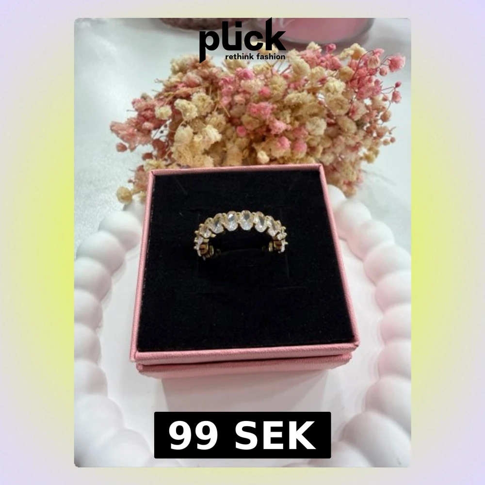Elegant ring i rostfritt stål, pläterad med 18K guld och dekorerad med gnistrande zirkonstenar. Den justerbara designen ger en bekväm passform. Ringen passar perfekt för både vardag och fest. ✨