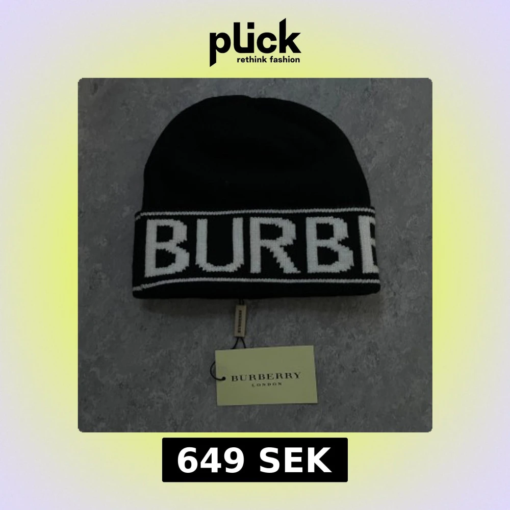 Svart mössa från Burberry med bred vit logotyp runt uppviket. Stilren och klassisk design som ger en cool vibe. Materialet är stickat och känns mjukt mot huden. Perfekt för att lyfta din streetstyle under kyliga dagar.