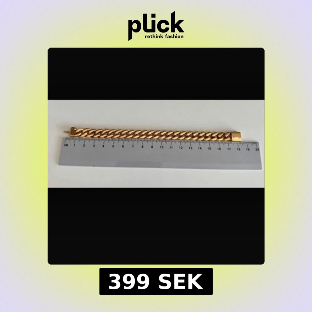 Snyggt chunky armband i guldig färg med klassisk kedjedesign. Längden är cirka 18 cm och länkarna är breda och platta för en modern look. Perfekt för dig som gillar statement-smycken och vill ha något som syns på handleden.