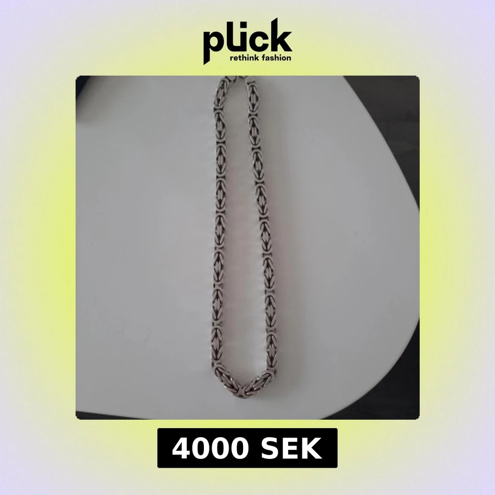Halsbandet har en robust och stilren look, perfekt för att ge en extra touch till din outfit. Märkt med 925, vilket indikerar att det är tillverkat av sterlingsilver. Halsbandet är 70 cm långt och är 10mm bred, väger strax över 370 gram. För bådas säkerhet sköts försäljning enbart i person