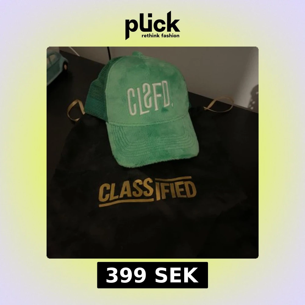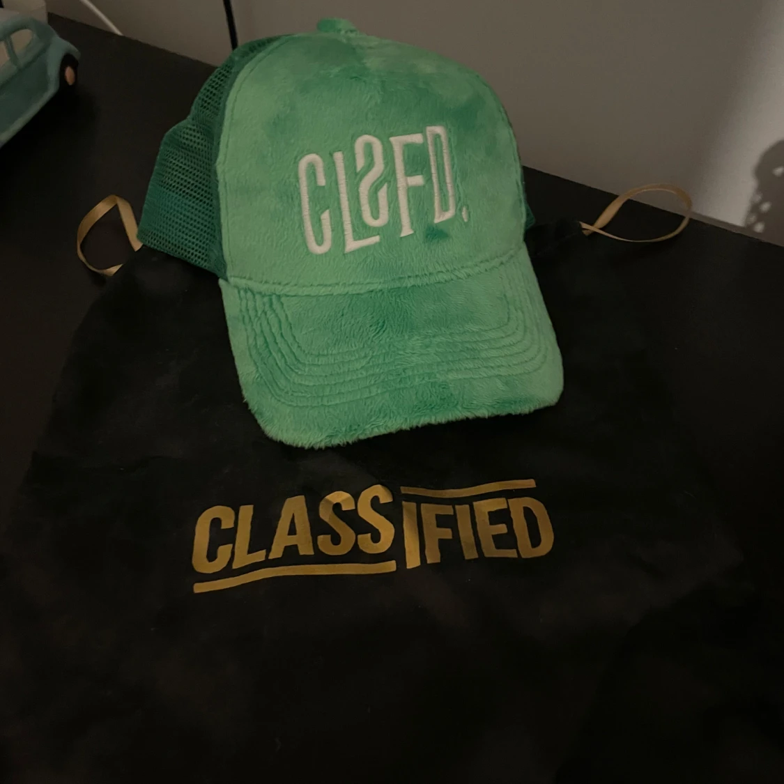 Exklusiv Snygg grön keps från Classified som inte säljs längre! med CLSFD-brodyr framtill. Framsidan är i mjuk plysch och baksidan har meshpaneler för extra ventilation. Kepsen har böjd skärm och justerbar passform. Perfekt accessoar för en cool streetstyle. Du får även med dustbagen till kepsen! Använd ca 1-3 gånger🙌🤩