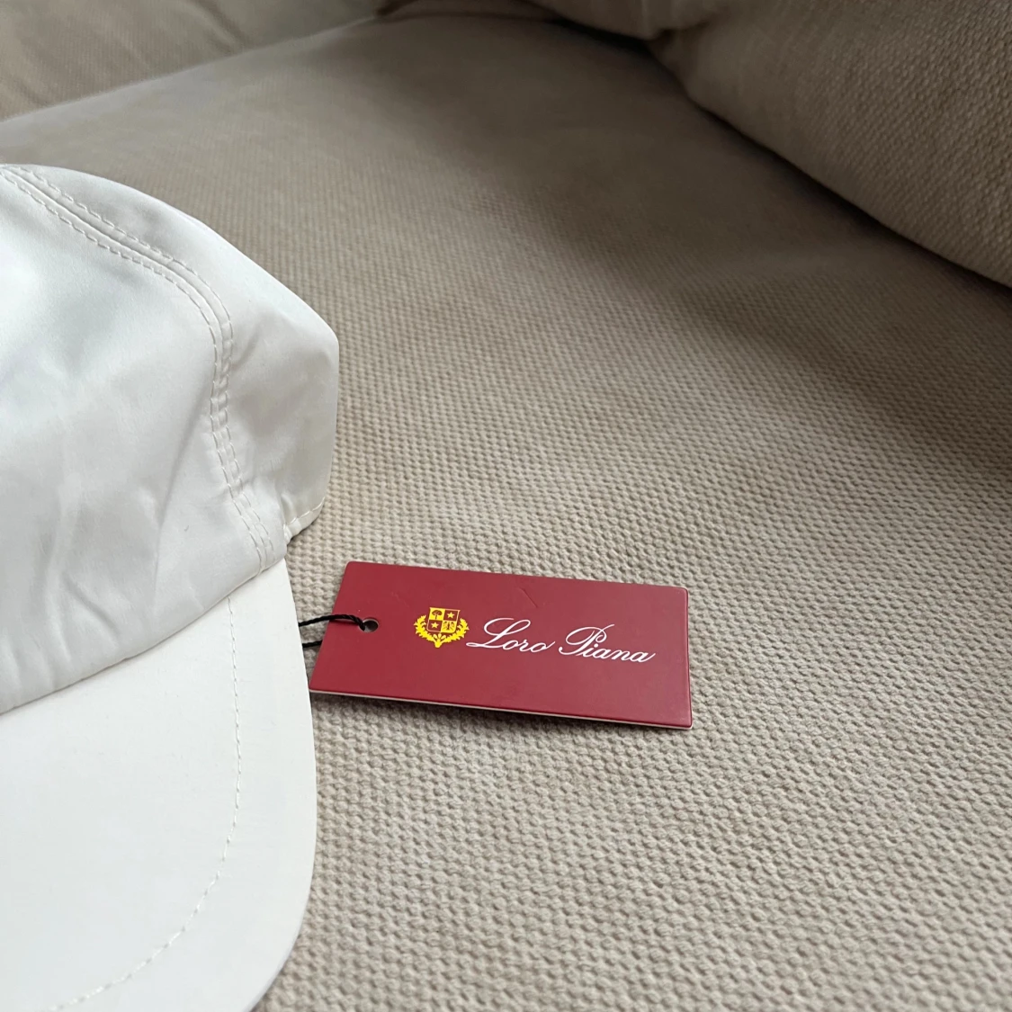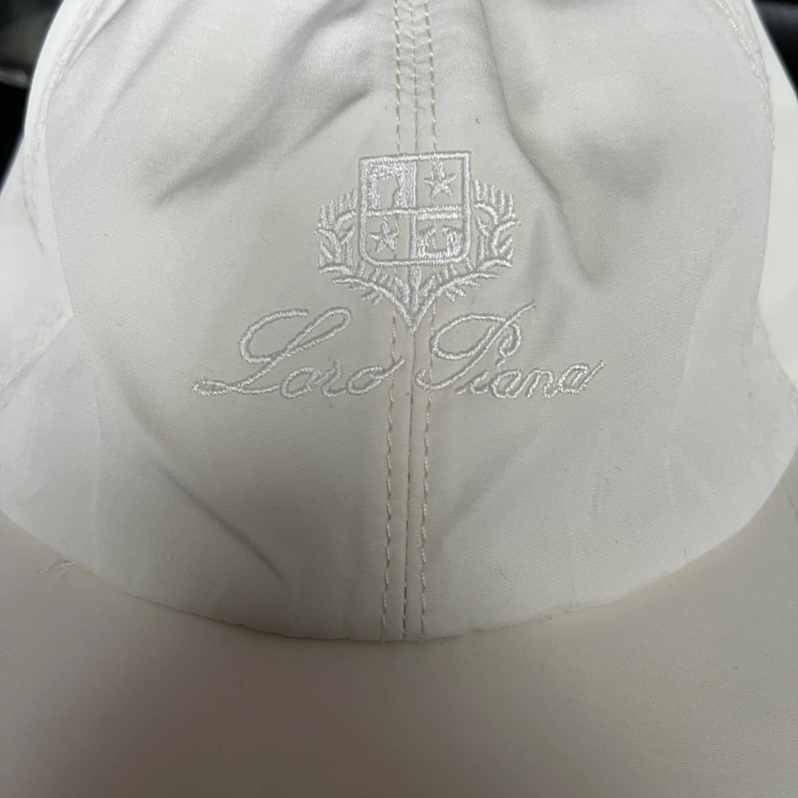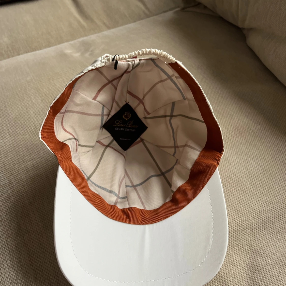Exklusiv vit keps från Loro Piana med broderad logga framtill. Kepsen har en klassisk böjd skärm och insidan är fodrad med rutigt tyg och orange kant. Tillverkad i ett slätt, lyxigt material och har elastisk baksida för skön passform.