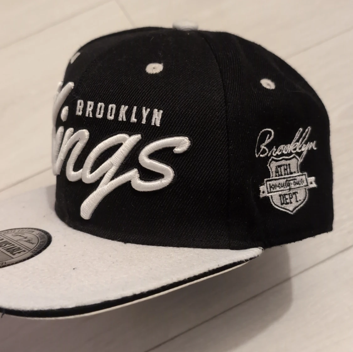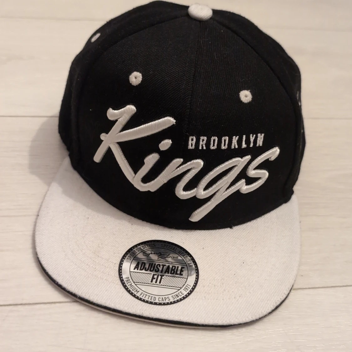Snygg snapback-keps från FSBN med broderad text 'Brooklyn Kings' i vitt. Kepsen är svart med vit skärm och vita detaljer, samt justerbar passform baktill. Extra broderade detaljer på sidan och baksidan med 'Sports Edition'. Perfekt för en sportig streetstyle.