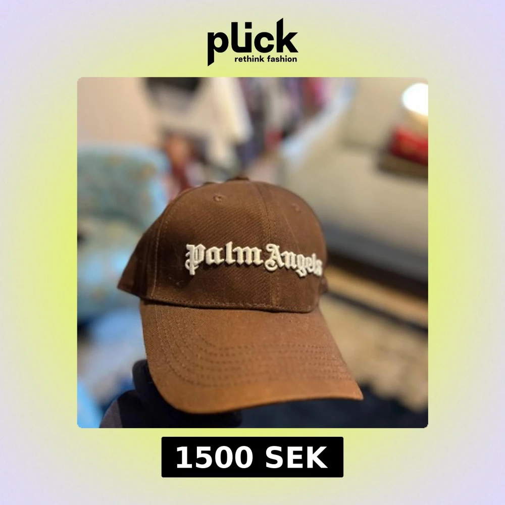 Snygg brun keps från Palm Angels med broderad vit logga framtill och på baksidan. Kepsen har en klassisk böjd skärm, justerbart metallspänne och en liten palm-broderi på sidan. Storleken är juster bar.