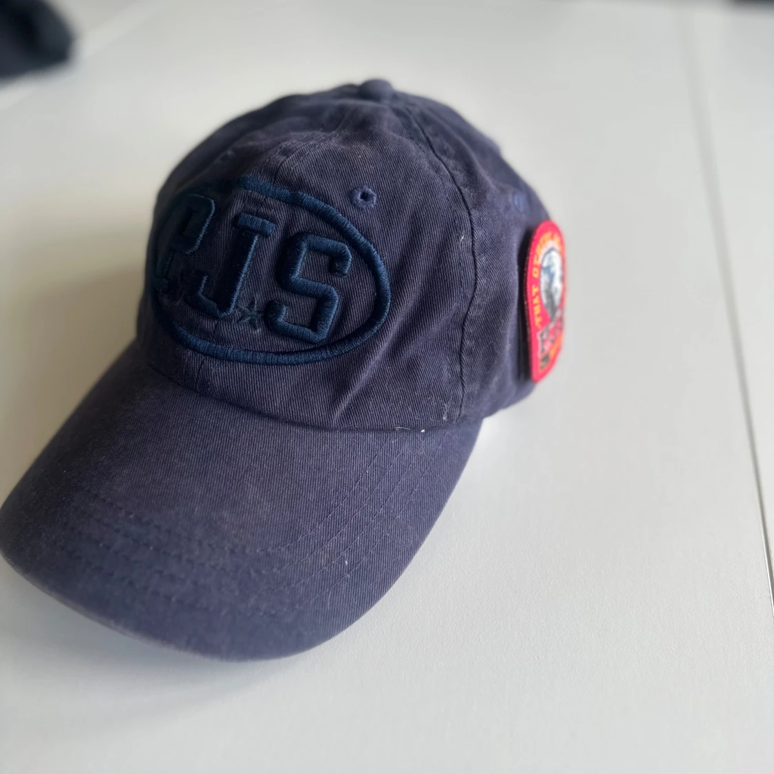 Snygg mörkblå keps från Parajumpers med broderad logga framtill och ett färgglatt märke på sidan. Kepsen har justerbar rem baktill för perfekt passform.