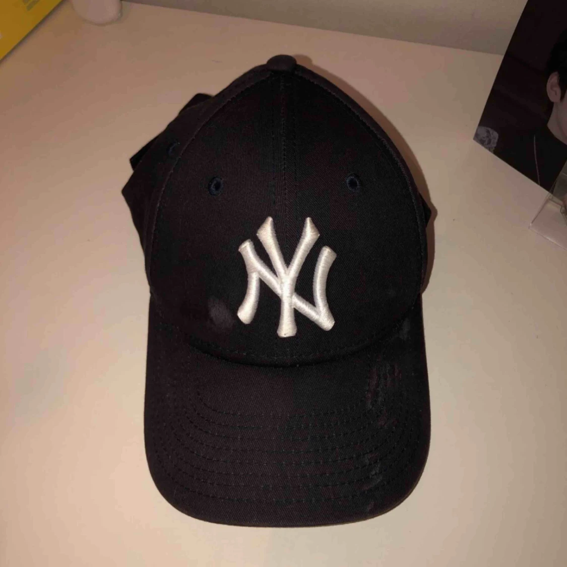 Svart kepsâšđŠ âDenna kepsen Ă€r anvĂ€nd och har nĂ„gra flĂ€ckar men kan tas bort i tvĂ€tten. Den Ă€r annars i gott skick och passar bra till mĂ„nga stilar!â