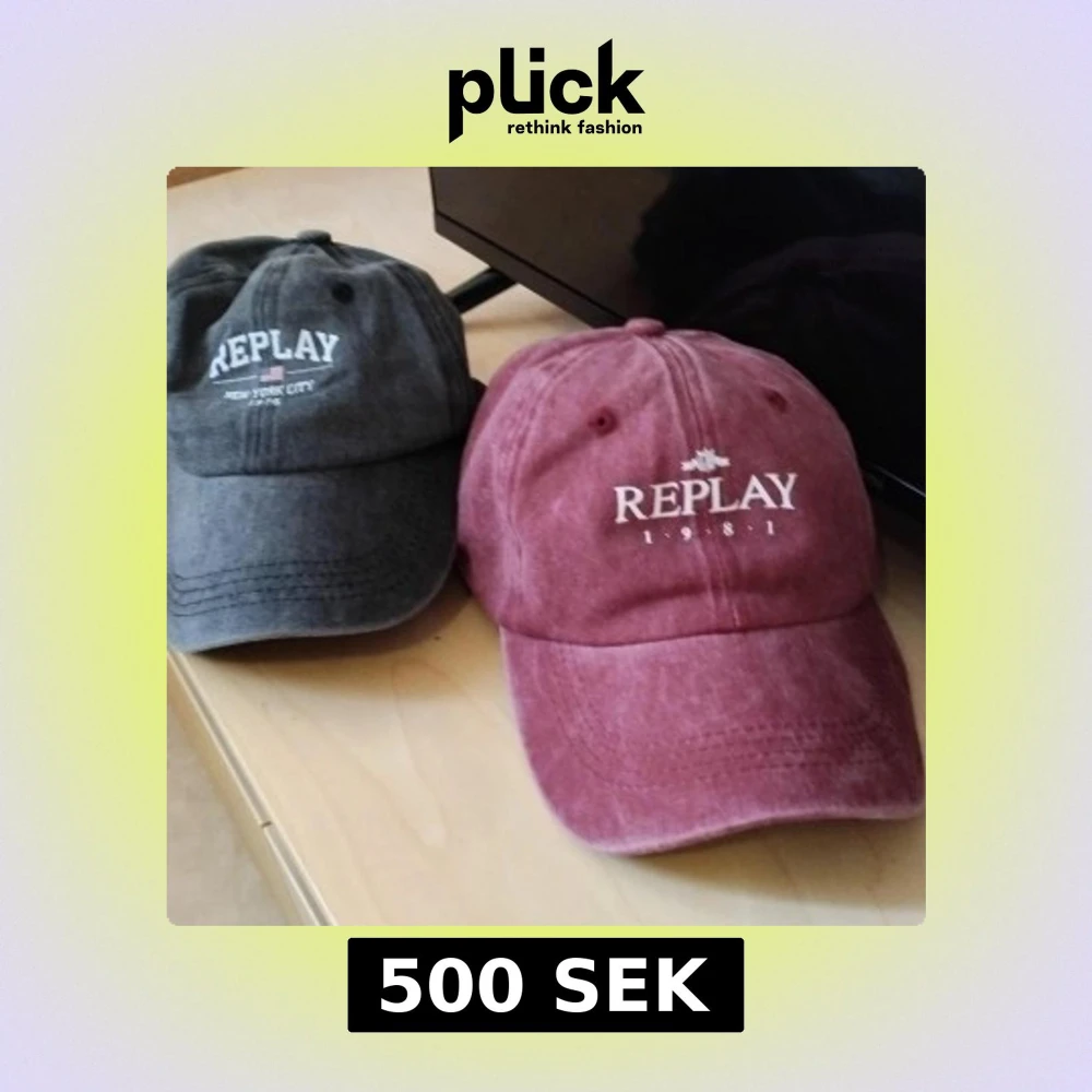 Två snygga kepsar från Replay, en i mörkgrå och en i vinröd ton. Båda har klassisk böjd skärm och vit broderad logga framtill. Tillverkade i mjuk bomull med justerbar rem bak för perfekt passform. Perfekt för dig som gillar streetstyle och vill ha en cool accessoar.