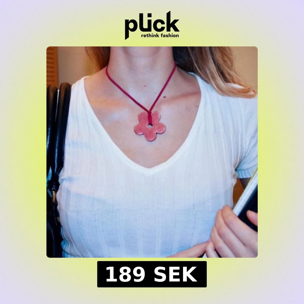 Charmigt halsband med en stor rosa blomma som hänge. Handgjort i keramik av oss - Vivid UF. Om annan färg önskas på band, tar vi emot beställningar i Instagram DM. @_vividuf