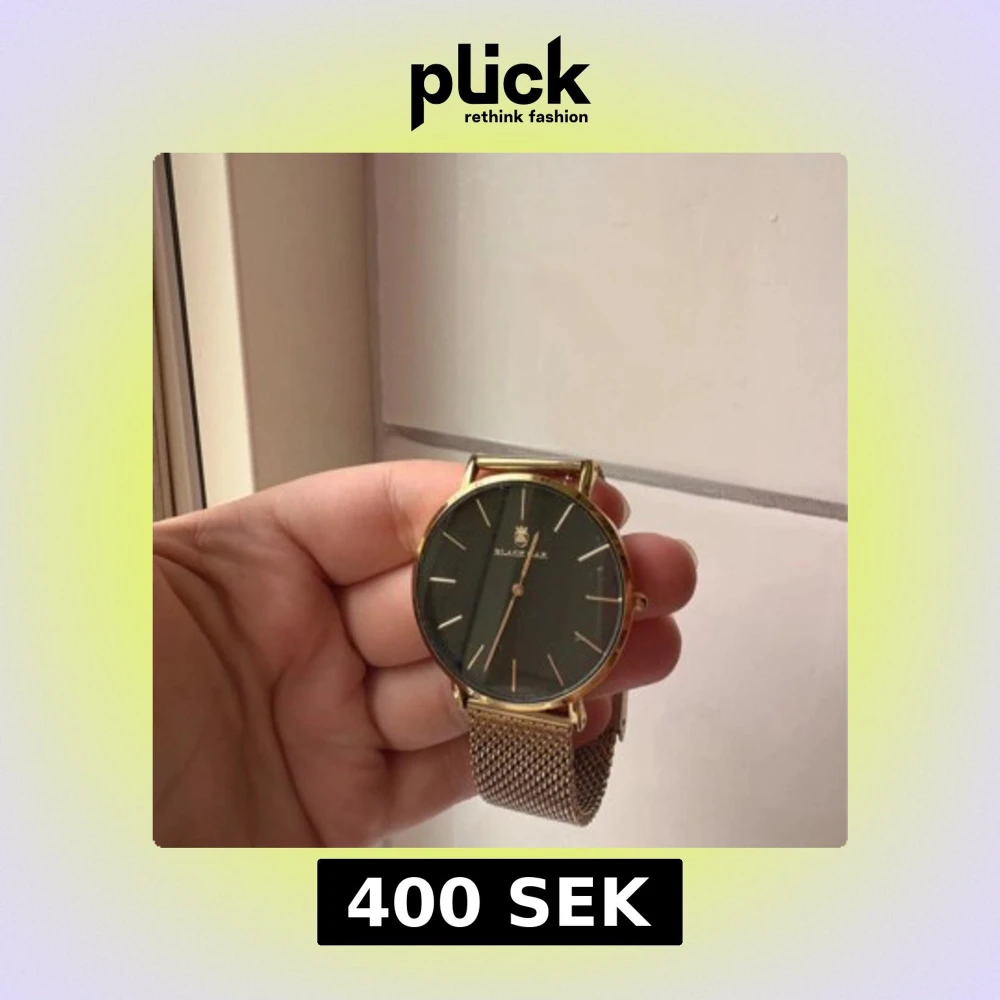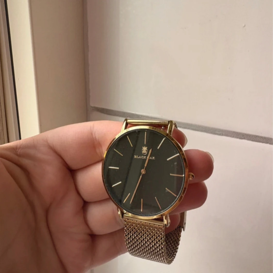 Stilren klocka från Black Oak med svart urtavla och tunna guldiga markeringar. Boetten är rund och i guldton, och armbandet är ett snyggt meshband i metall med guldfinish. Perfekt för dig som gillar minimalistisk design och vill ha något som sticker ut.