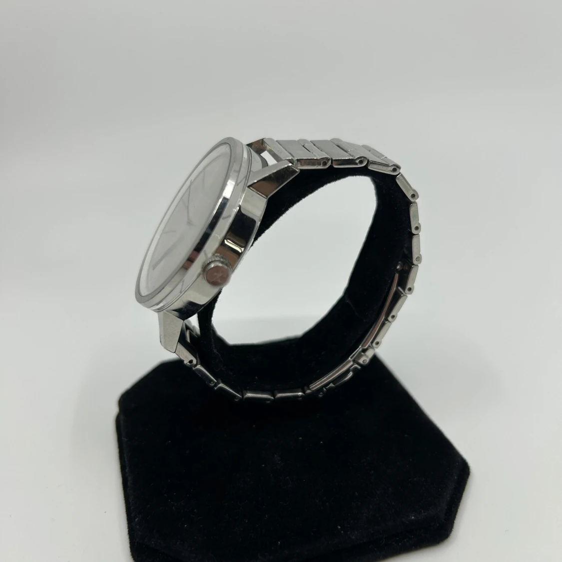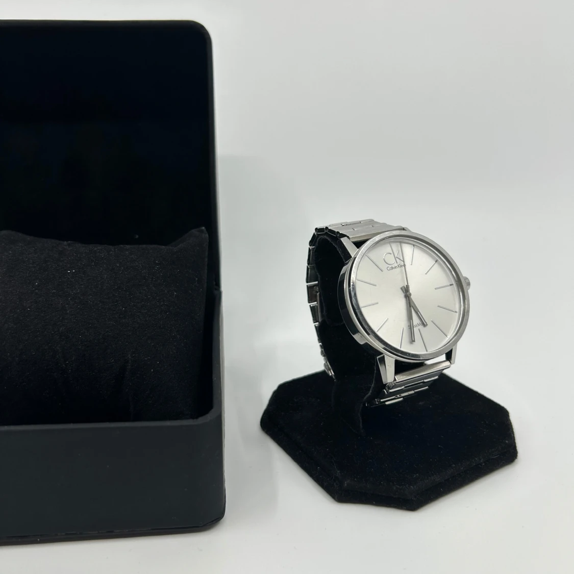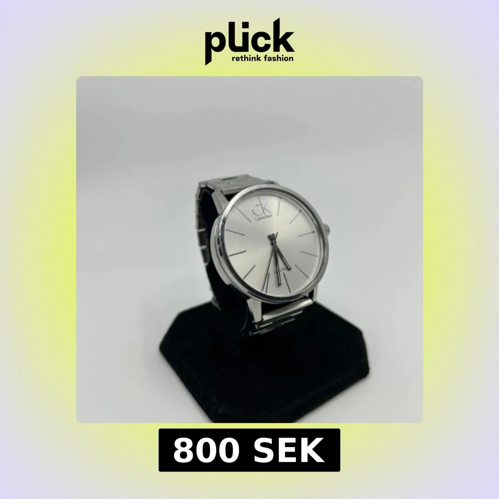 Stilren klocka från Calvin Klein med rund urtavla i silver och minimalistiska svarta markeringar. Armbandet är i blankt silverfärgat metall och ger en clean och modern vibe. Perfekt accessoar för dig som gillar enkel och snygg design.