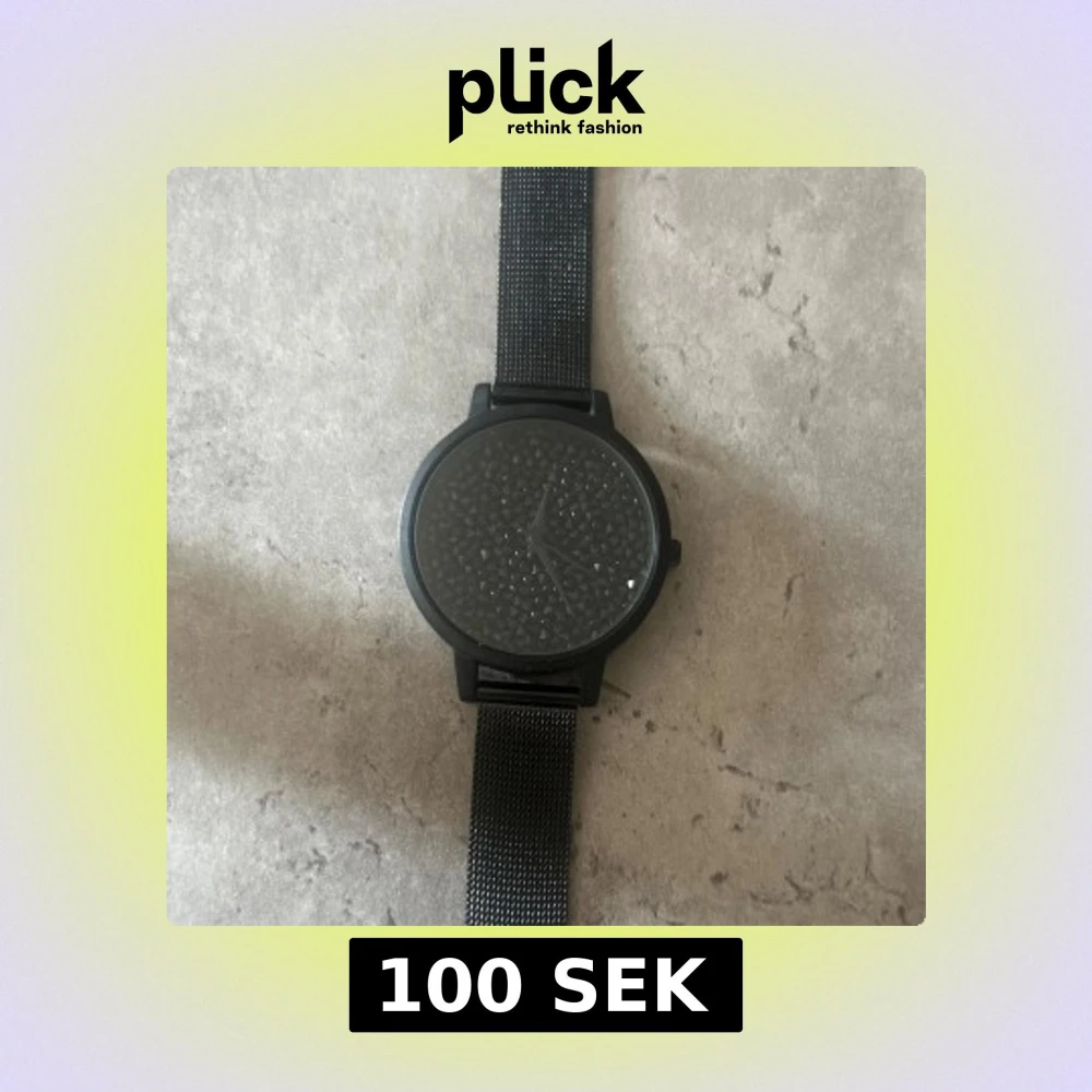 Stilren svart klocka från Even&Odd med rund urtavla dekorerad med små svarta stenar för en cool textur. Klockan har ett svart mesharmband i metall och minimalistisk design utan siffror. Perfekt accessoar för att lyfta din outfit.