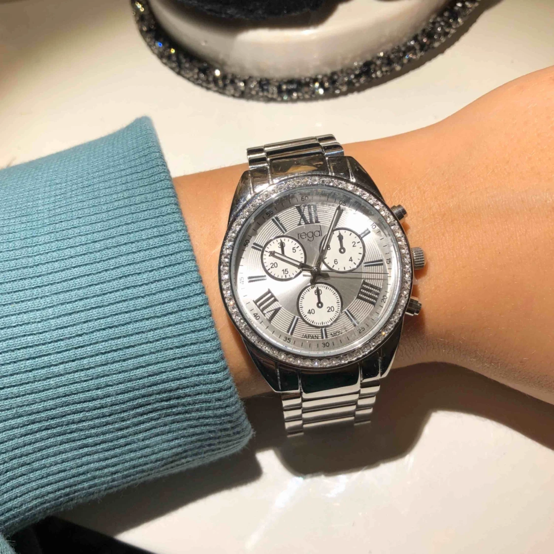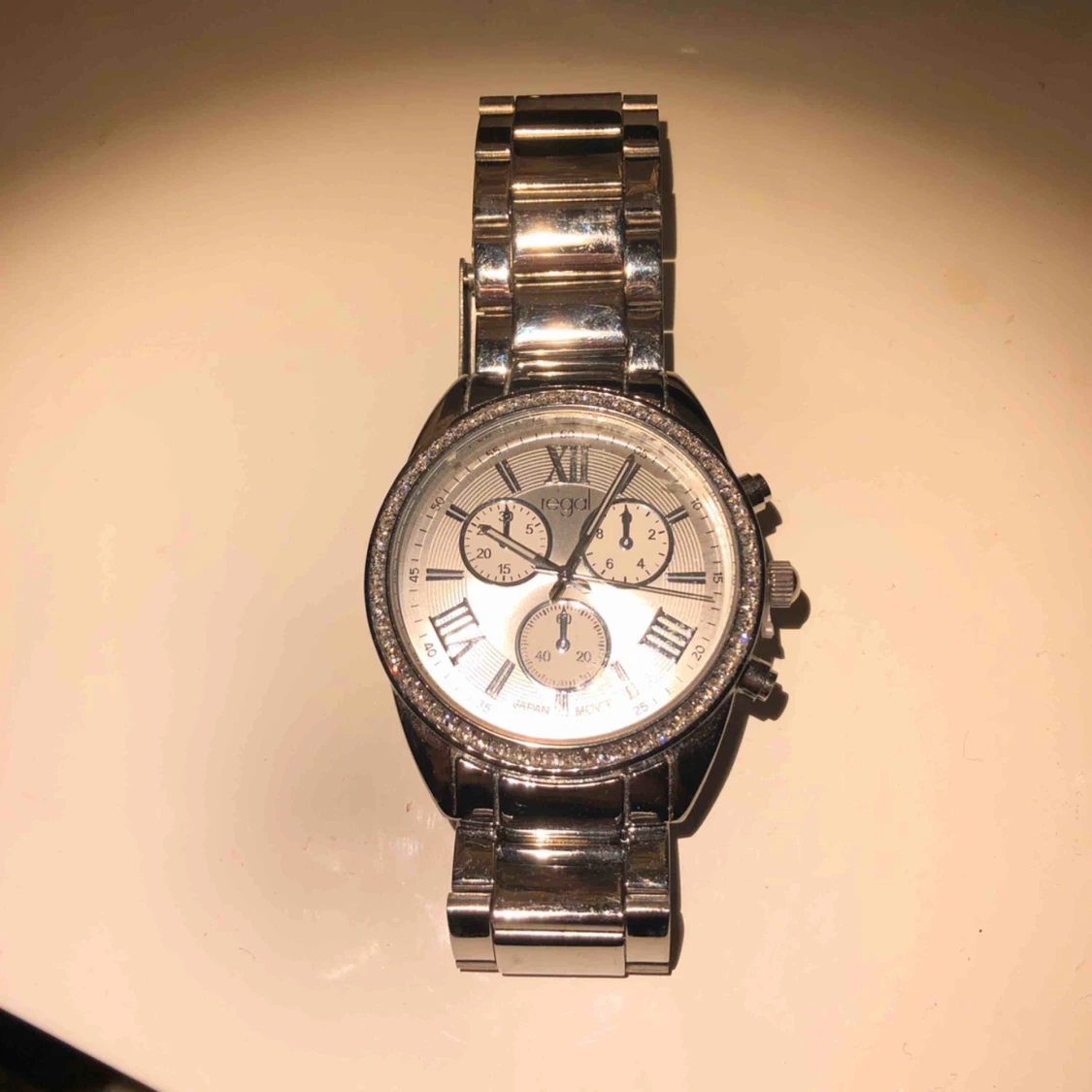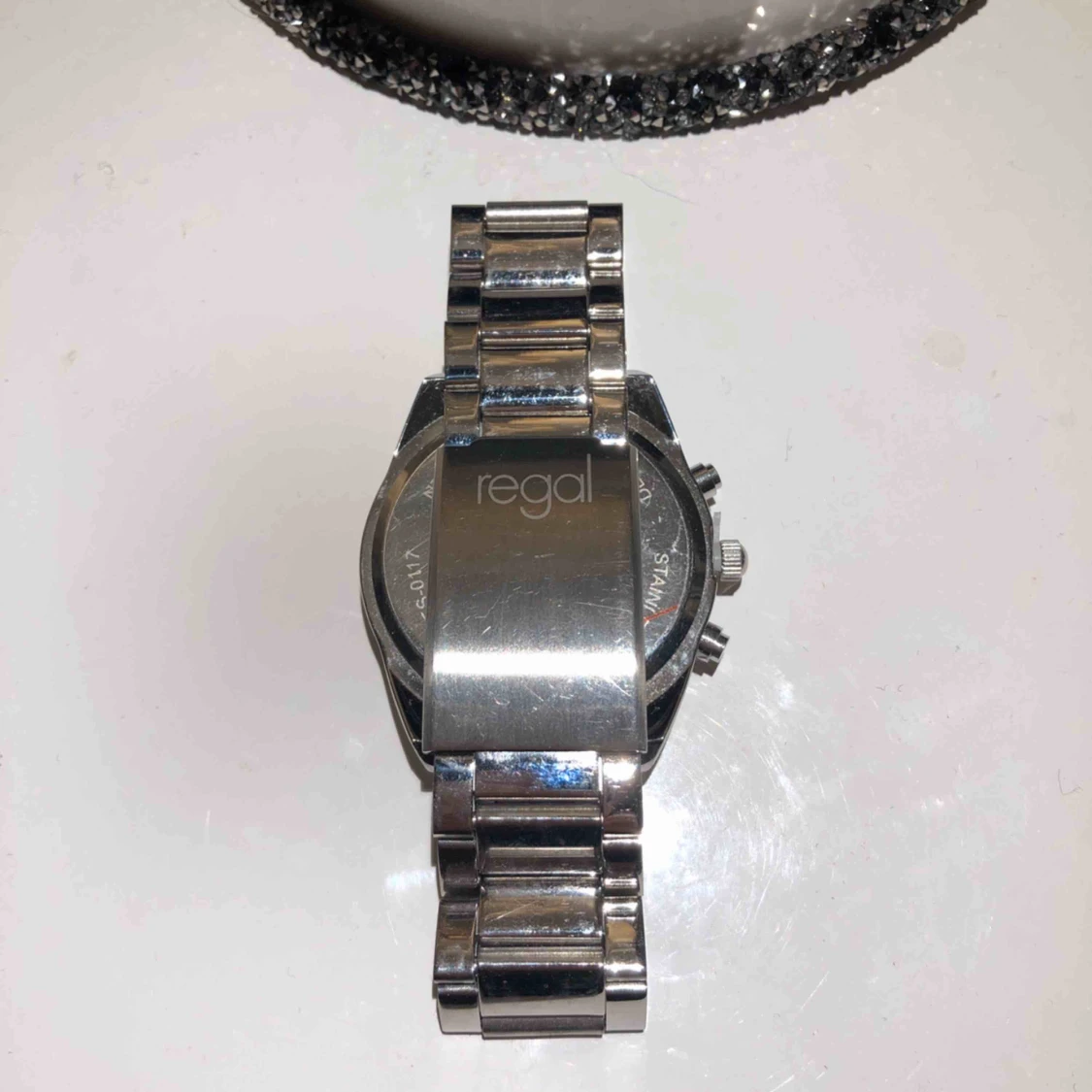 Silvrig klocka från regal. Skriv för fler bilder / info