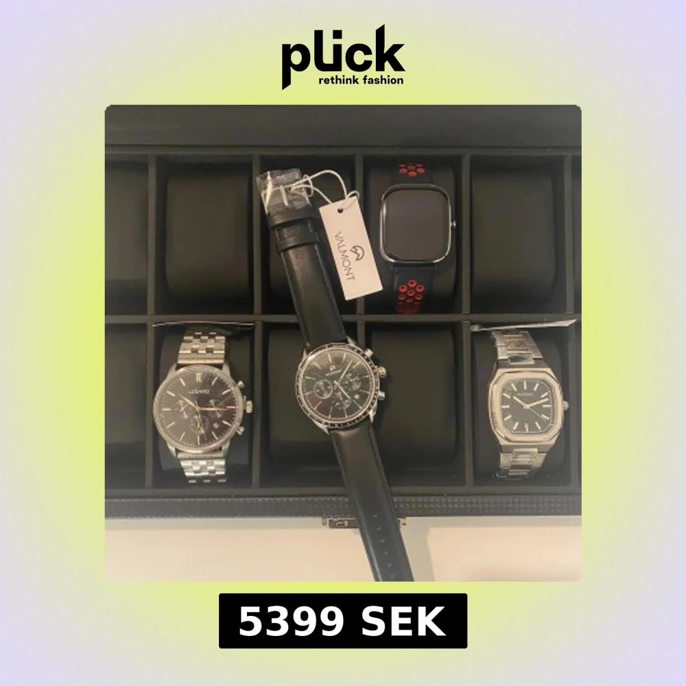 Jag säljer 4 fina helt nya och oanvända klockor. Det är Lugano (2995kr), Faucon (3049kr) och Valmont (3049kr), som är deras butikspris. Sedan säljer och en Amafit (299kr) som är i nytt skick, och klocklådan (1200kr+) som är helt ny. Klockorna är uppe individuellt på min profil. Skriv vid frågor eller funderingar. Priset kan diskuteras.